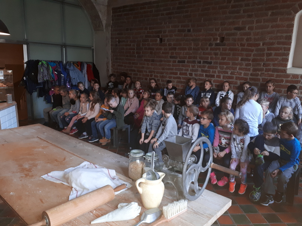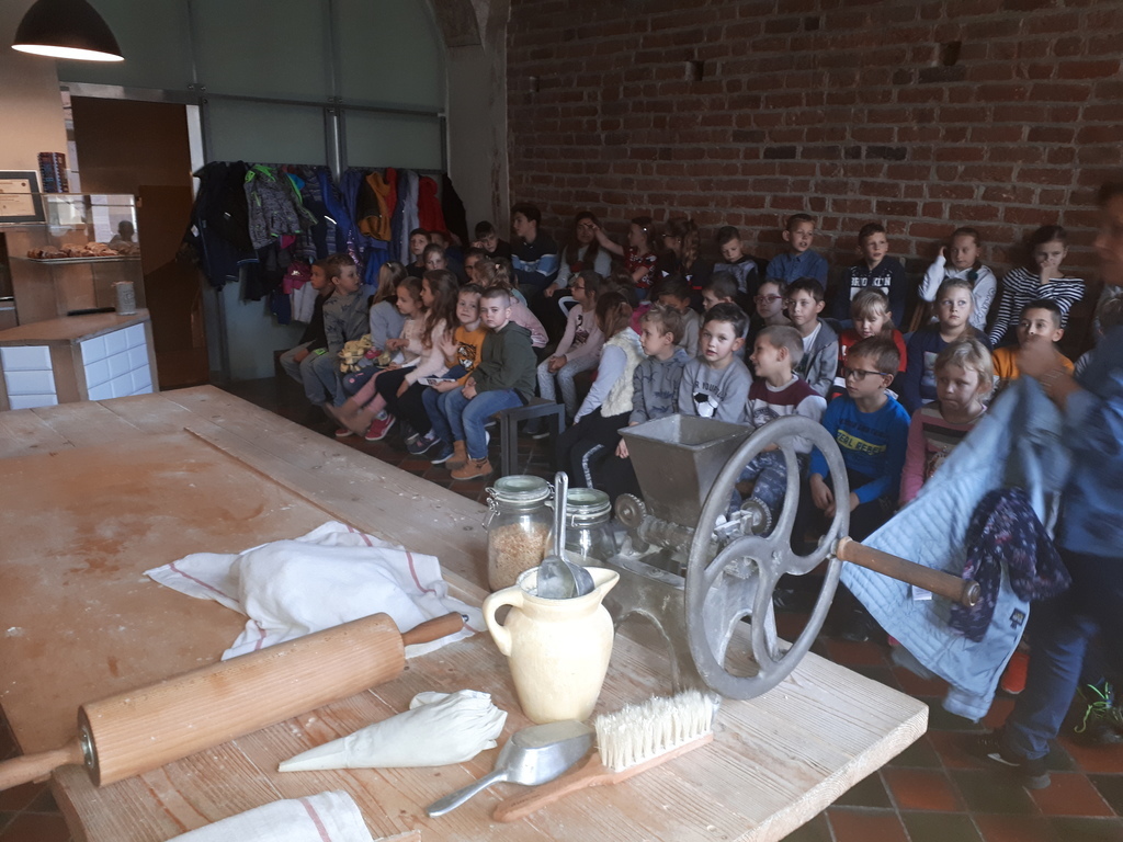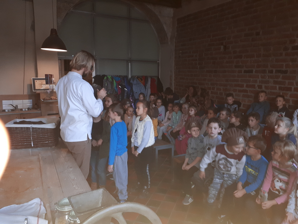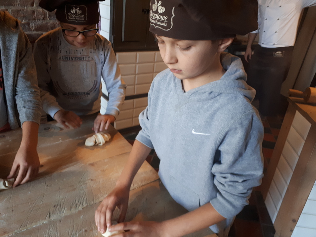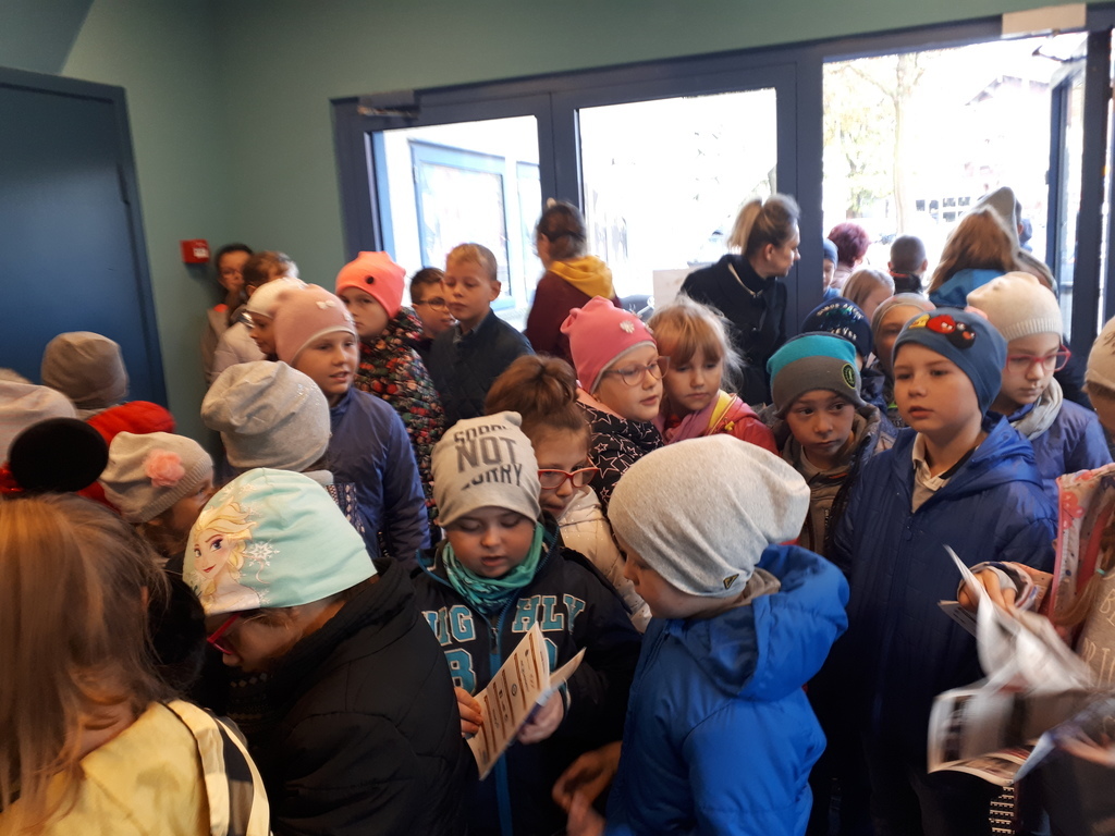 W środę 9 października 2019r. wyjechaliśmy do Poznania na spektakl pt. „Koziołek Matołek i zagadka ratuszowej wieży”. Historia była opowieścią o tym, jak znany dzieciom podróżnik - Koziołek Matołek, w towarzystwie Poznańskiej Pyry i Rogala wyruszył w podróż po Polsce w poszukiwaniu swoich kuzynów - koziołków, które uciekły z poznańskiej ratuszowej wieży. Bohaterowie spektaklu przenosili się w kolejne miejsca dzięki guzikom teleportacji. Podróż ich była okazją do poznawania wielu ciekawych zakątków Polski, a przede wszystkim pieśni ludowych z różnych regionów naszej ojczyzny oraz tańców narodowych. W przedstawieniu zobaczyliśmy między innymi: wielkopolski taniec Marynia, Krakowiak i Polonez; były tańce góralskie oraz tańce kaszubskie. Można było zauważyć, że spektakl zrobił na dzieciach ogromne wrażenie. Ujmował kolorowymi strojami tancerzy, melodyjnymi piosenkami współczesnymi i dynamiczną fabułą. Po spektaklu wszyscy uczniowie pod opieką wychowawców: p. W.Mataczyńskiej, p. E.Wawrzyk, p. E.Walkowiak oraz p. A.Waseli i p. M.Chruściel udali się na poznański Rynek, by w samo południe zobaczyć słynne koziołki na wieży poznańskiego Ratusza. Uczniowie gościli także w Rogalowym Muzeum Poznania, gdzie poznawali tajniki przygotowywania tradycyjnych rogali świętomarcińskich, a w dowód uznania otrzymali pamiątkowe certyfikaty czeladnicze.