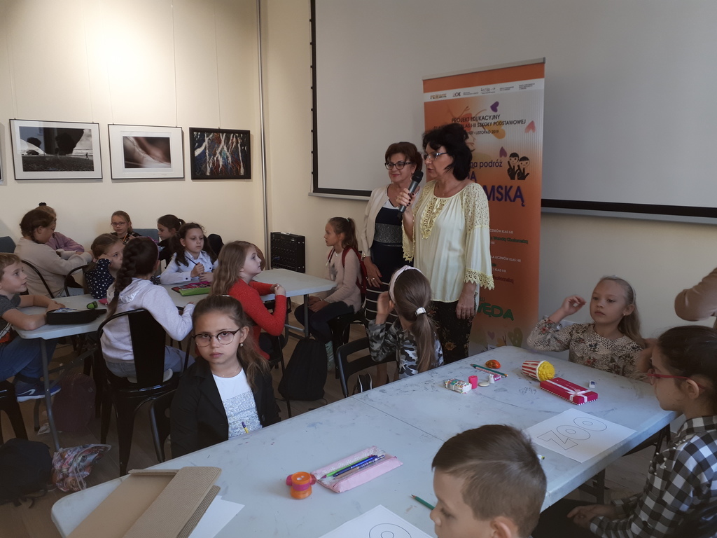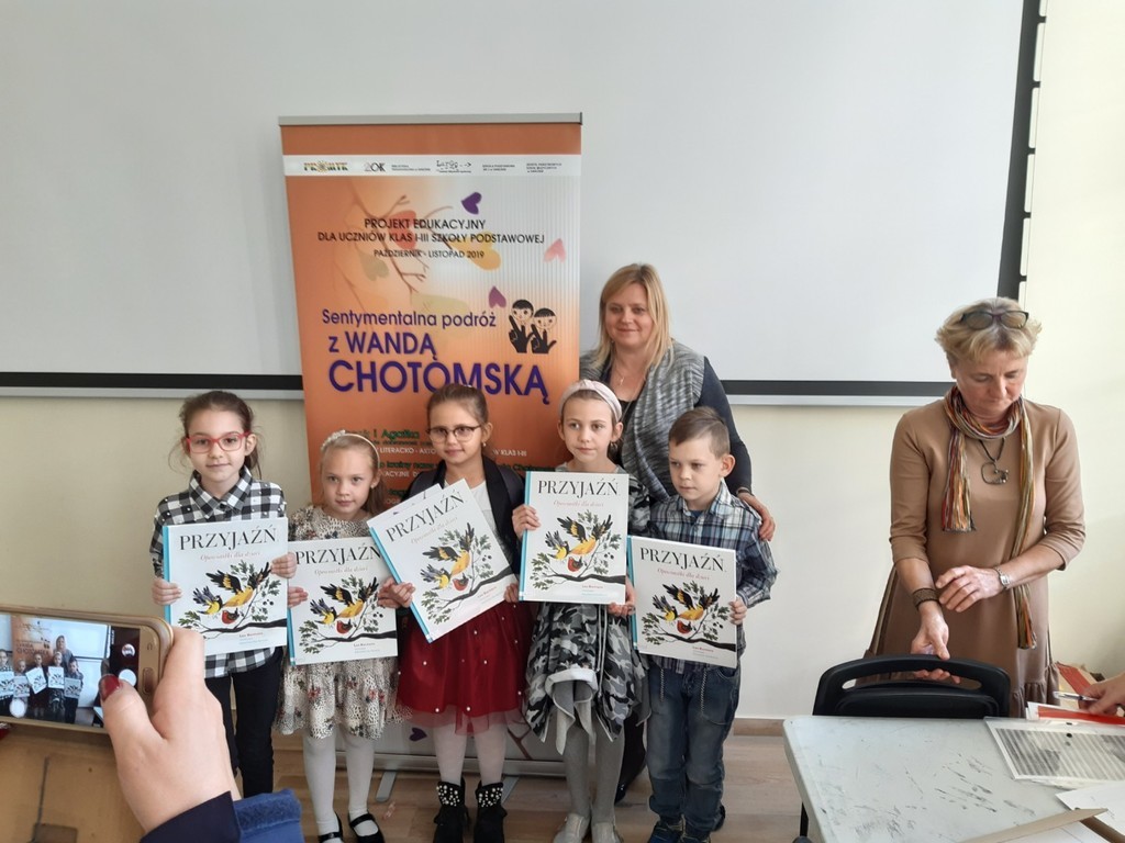 Dnia 23 października 2019r. pięcioosobowa grupa uczniów z klas trzeciej i drugiej wyjechała do Gniezna pod opieką nauczycielki edukacji wczesnoszkolnej p. Ewy Walkowiak oraz rodziców, aby reprezentować naszą szkołę w konkursie „Kaligram ortograficzny”. Konkurs ten był jednym z przedsięwzięć realizowanych w ramach projektu edukacyjnego „Sentymentalna podróż z Wandą Chotomską” i miał na celu przyczynić się do rozwijania zainteresowań literackich małych czytelników. Był przeprowadzony w eleganckim wnętrzu jednej z sal Starego Ratusza. Uczestnicy konkursu, wypełniając wierszami Wandy Chotomskiej obszar wydrukowanego na kartce napisu zoo, tworzyli swoisty rodzaj kaligramu. Ocenie jurorów podlegała liczba wpisanych wierszy oraz estetyka ich wykonania. Organizatorami w/w konkursu byli: Stowarzyszenie Centrum Rehabilitacyjno-Kulturalne Promyk - Gniezno oraz Miejski Ośrodek Kultury. Wszyscy uczestnicy konkursu zostali nagrodzeni dyplomami, zakładkami i pięknymi książkami.