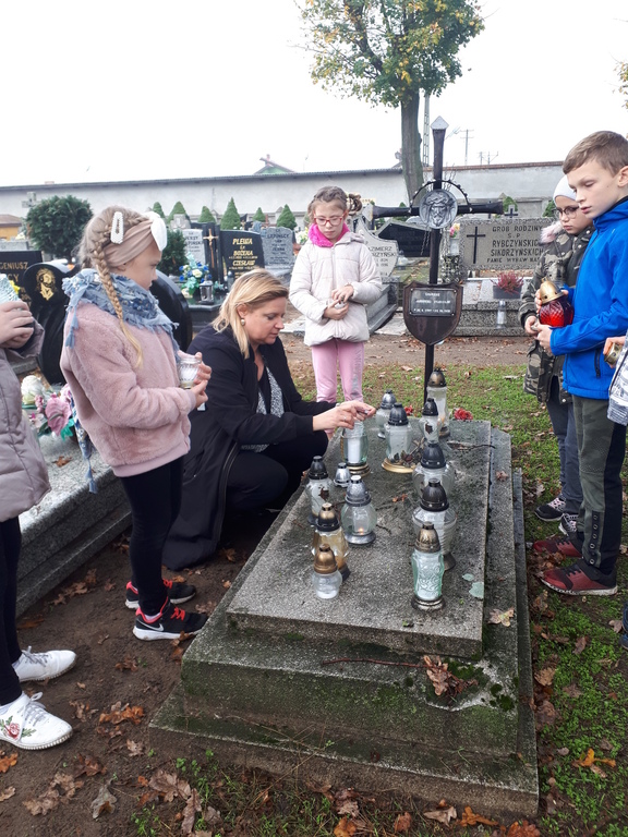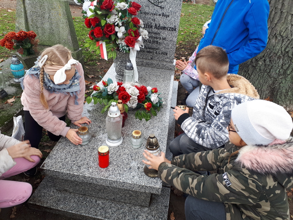 W ramach akcji "Szkoła pamięta" uczniowie poszczególnych klas pod opieką nauczycieli uczestniczyli w wycieczkach patriotycznych: odwiedzili cmentarz w Łopiennie, gdzie porządkowali groby żołnierzy poległych za wolność naszej ojczyzny oraz zapalili na nich znicze. Uczcili także udział mieszkańców Łopienna w Powstaniu Wielkopolskim, zapalając znicz pod tablicą upamiętniającą to wydarzenie.