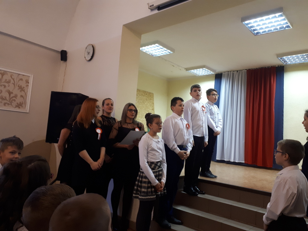 11 listopada punktualnie o godz.10.00, po Mszy św.w intencji Ojczyzny, odbyła się w sali wiejskiej w Łopiennie uroczysta akademia z okazji Narodowego Święta Niepodległości, na którą przybyli zaproszeni goście i liczna społeczność Łopienna. W pięknej akademii pt."Tanecznym krokiem ku Niepodległej", przygotowanej pod kierunkiem p. A.Waseli, uczniowie naszej szkoły godnie uczcili 101 rocznicę odzyskania przez Polskę niepodległości.