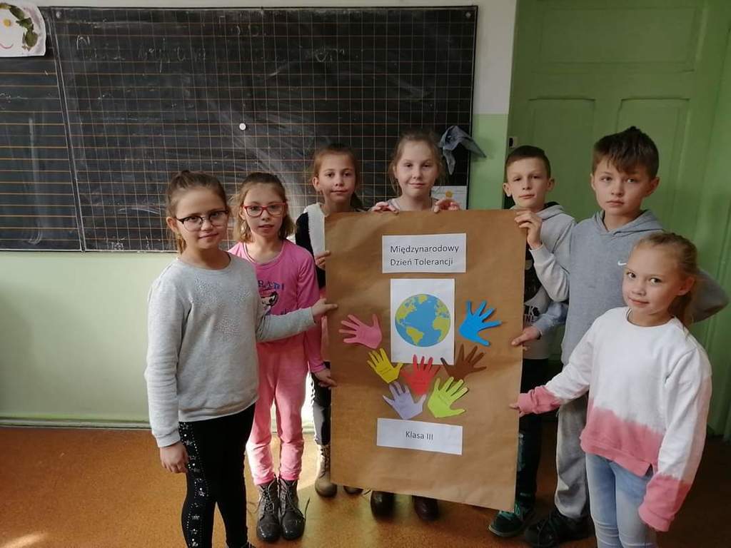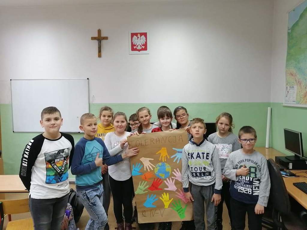 W związku z przypadającym w listopadzie Międzynarodowym Dniem Tolerancji uczniowie naszej szkoły poznawali istotę i znaczenie tolerancji w życiu człowieka. Pogadankę na jej temat przeprowadzała p.pedagog N.Wawrzyk. Uczniowie pod kierunkiem wychowawców wykonywali plakaty symbolizujące uznanie dla tej ważnej warości.