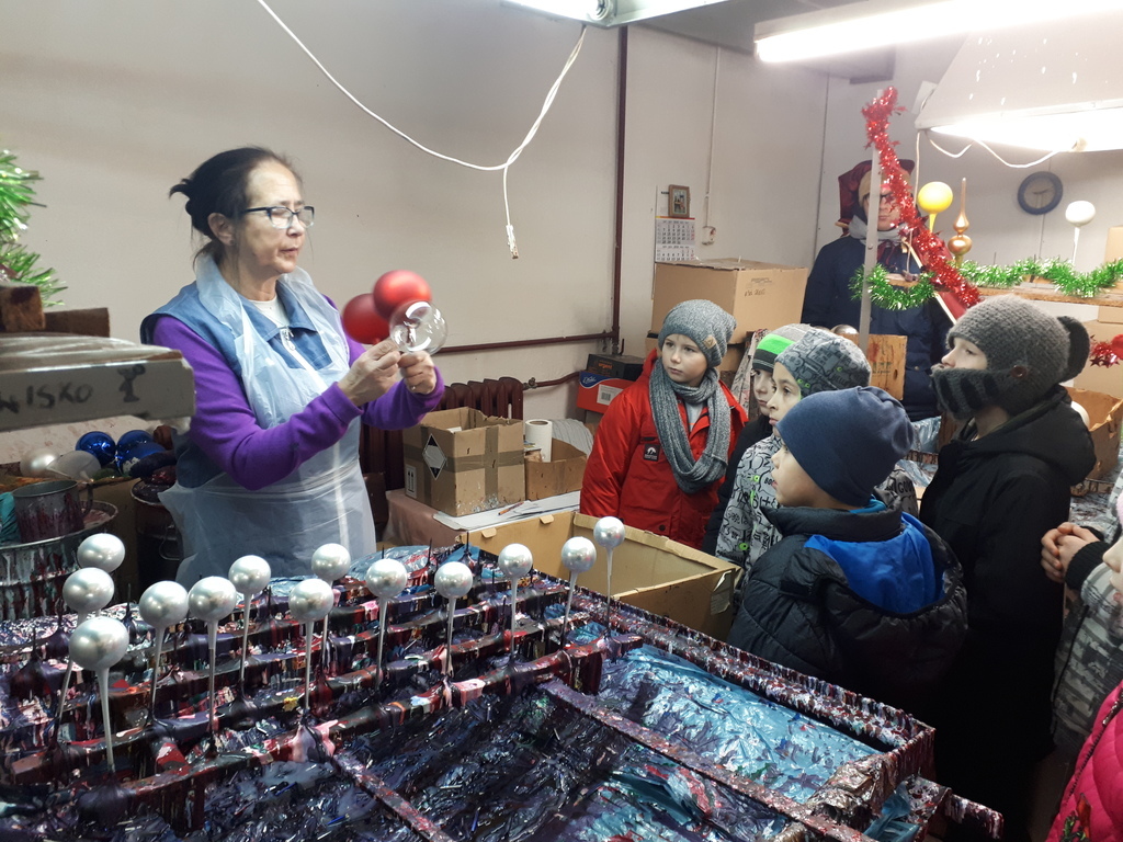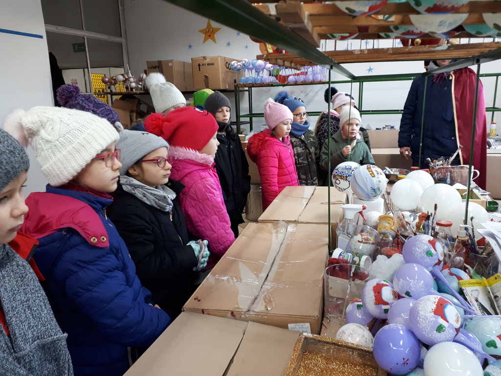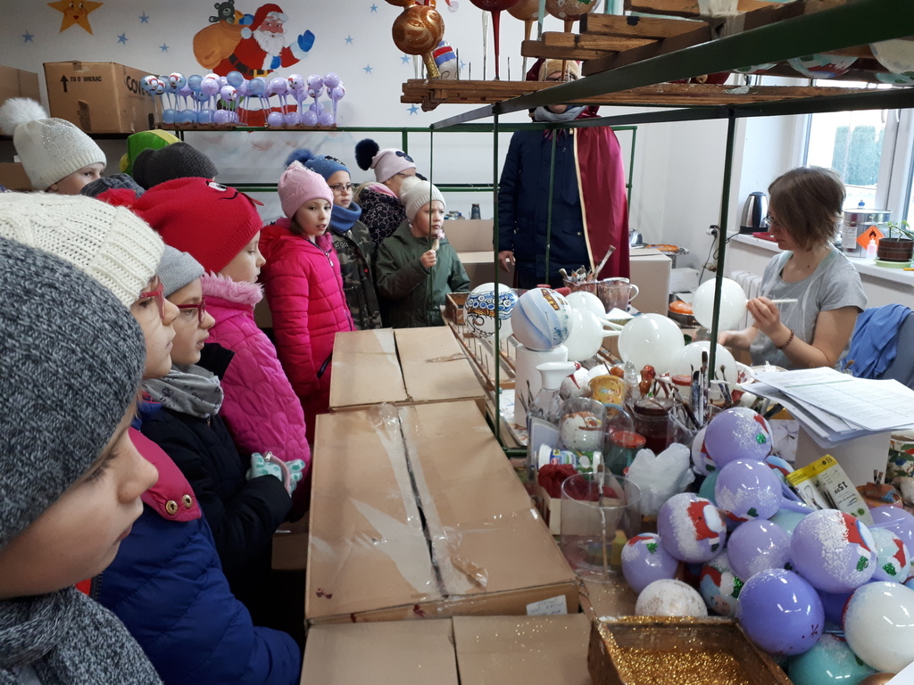 W czwartek 5 grudnia 2019r. przedszkolaki i młodsi uczniowie naszej szkoły wyjechali na wycieczkę do Gniezna. Najpierw zwiedzali zakład "Kadpol" produkujący bombki, poznając kolejne etapy ich produkcji oraz uczestniczyli w warsztatach, podczas których własnoręcznie je malowali. Następnie pojechali do kina, by obejrzeć premierowy pokaz filmu pt."Śnieżna paczka". Uczniowie przywieźli z Gniezna pamiątkowe bombki. Wycieczka wprowadziła wszystkich w przedświąteczny nastrój. Święta tuż,tuż...