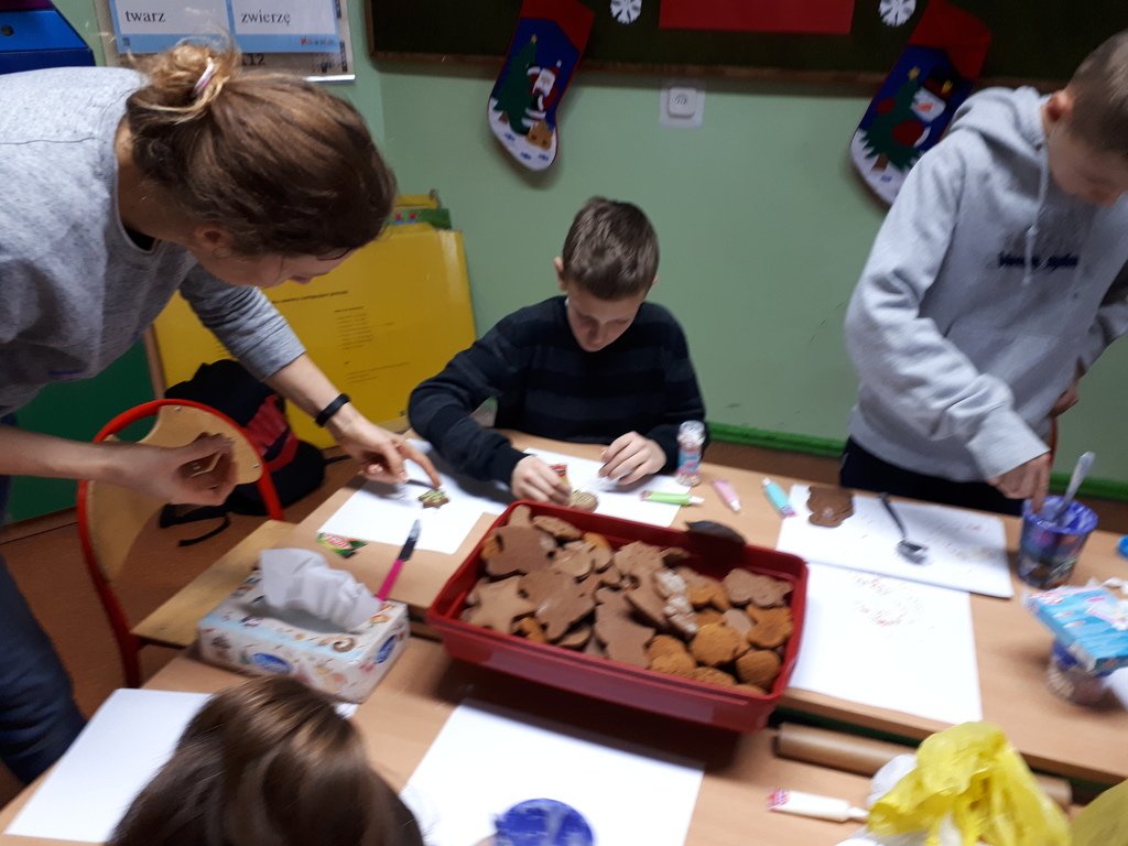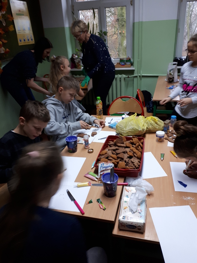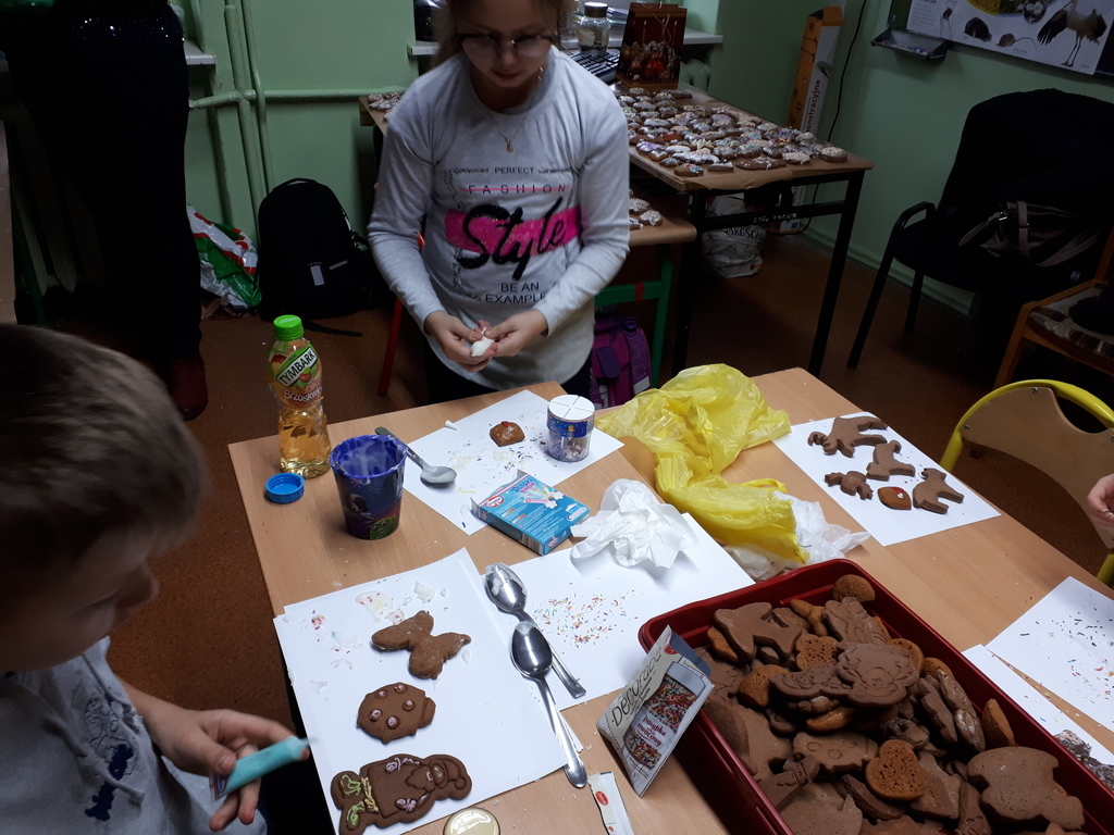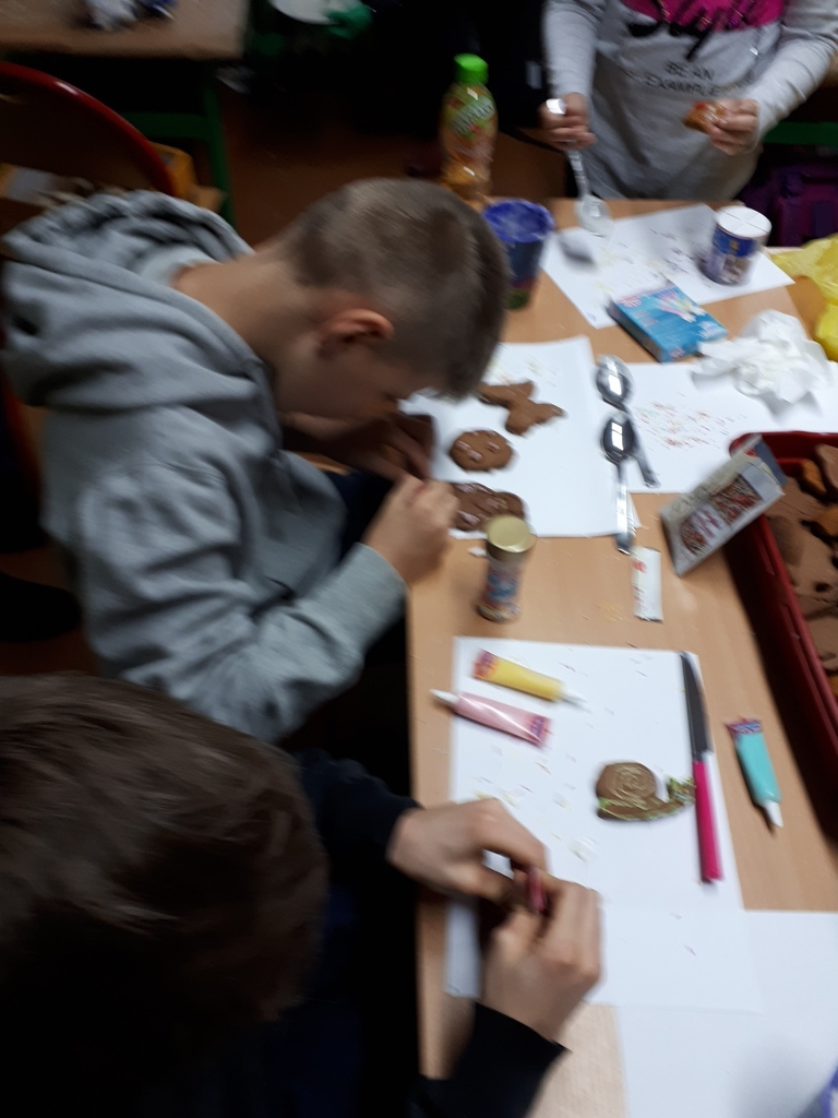 W środę 4 grudnia 2019r. odbyła się w naszej szkole kolejna część warsztatów, podczas których trwały przygotowania do kiermaszu bożonarodzeniowego. Dzięki uprzejmości Rodziców, którzy upiekli wspaniałe pierniki, uczniowie mogli wziąć udział w ich dekorowaniu.