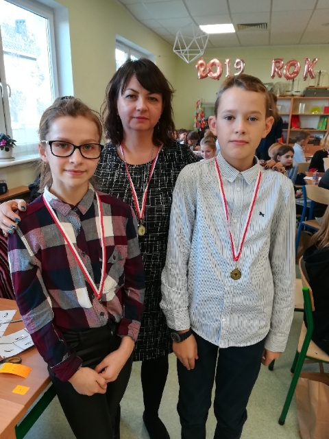Najlepsi matematycy z naszej szkoły z klasy 5 i 6 wzięli udział w XV Konkursie Matematycznym zorganizowanym przez Szkołę Podstawową w Zdziechowie. Zmagali się oni z 10 zadaniami "szybkiego liczenia" i 3 zadaniami tekstowymi. Marysia, Agata, Staś i Jan godnie reprezentowali szkołę w Łopiennie. Bardzo dobrze wypadli, zajmując wysokie lokaty w swoich grupach wiekowych. Serdecznie im gratulujemy.
