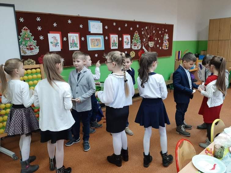 W przededniu Świąt Bożego Narodzenia, szkolni koledzy i koleżanki składali sobie najserdeczniejsze życzenia świąteczne i wspólnie spędzali czas, śpiewając kolędy i ciesząc się z nadchodzących świąt.