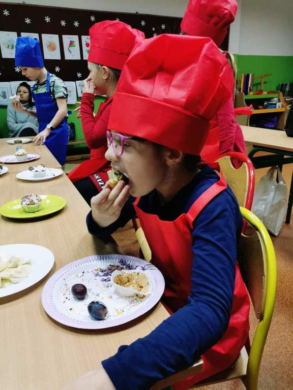14 lutego 2020r. uczniowie klasy drugiej rozpoczęli cykl spotkań, podczas których będą doskonalili swoje kulinarne umiejętności. Walentynkowe babeczki w ich wykonaniu wyglądały i smakowały przepysznie. Życzymy uczniom wielu kulinarnych sukcesów. Smacznego!