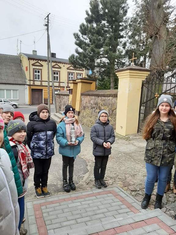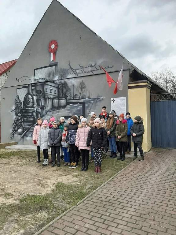 17 lutego 2020r.uczniowie kl 4-6 pod opieką wychowawców upamiętnili udział mieszkańców w Powstaniu Wielkopolskim. Zapalili znicz pod pamiątkową tablicą i na mogile powstańca. Przy muralu zapoznali się z historią działań powstańczych.