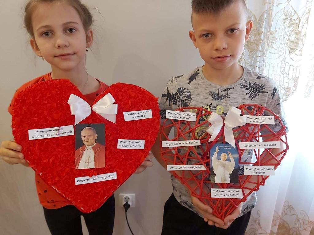 Z okazji tak wielkiego Jubileuszu uczniowie naszej szkoły zostali zaproszeni z inicjatywy Pani W.Włodarczak do udziału w akcji pt: „SERCE ZA SERCE”. Wszystkim zaangażowanym w to przedsięwzięcie uczniom i rodzicom należą się serdeczne podziękowania za tak liczny udział. Każda praca była piękna i poparta dobrym uczynkiem. Uczniowie mogą być dumni,że zrobili „coś” dobrego dla innych i mamy nadzieję, że będą tak czynić zawsze.