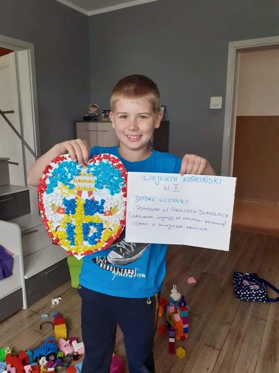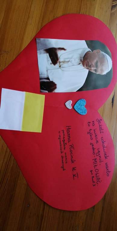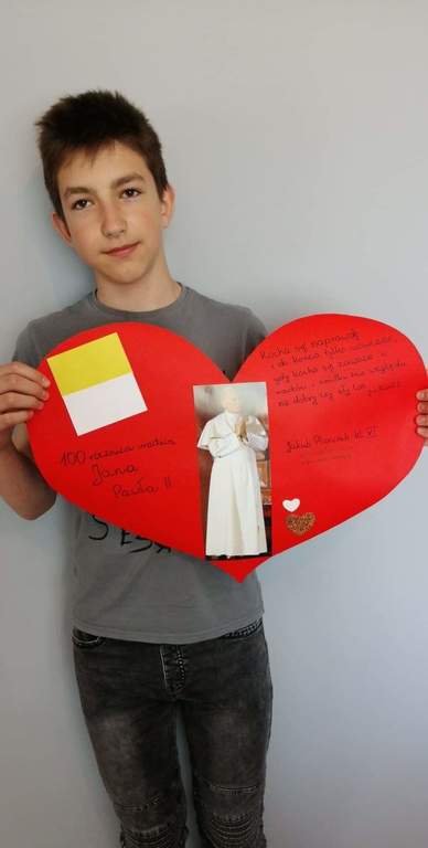 Z tej okazji uczniowie naszej szkoły zapoznali się z życiem i działalnością Papieża. Klasy młodsze obejrzały film, a klasy starsze przygotowały piękne prezentacje.