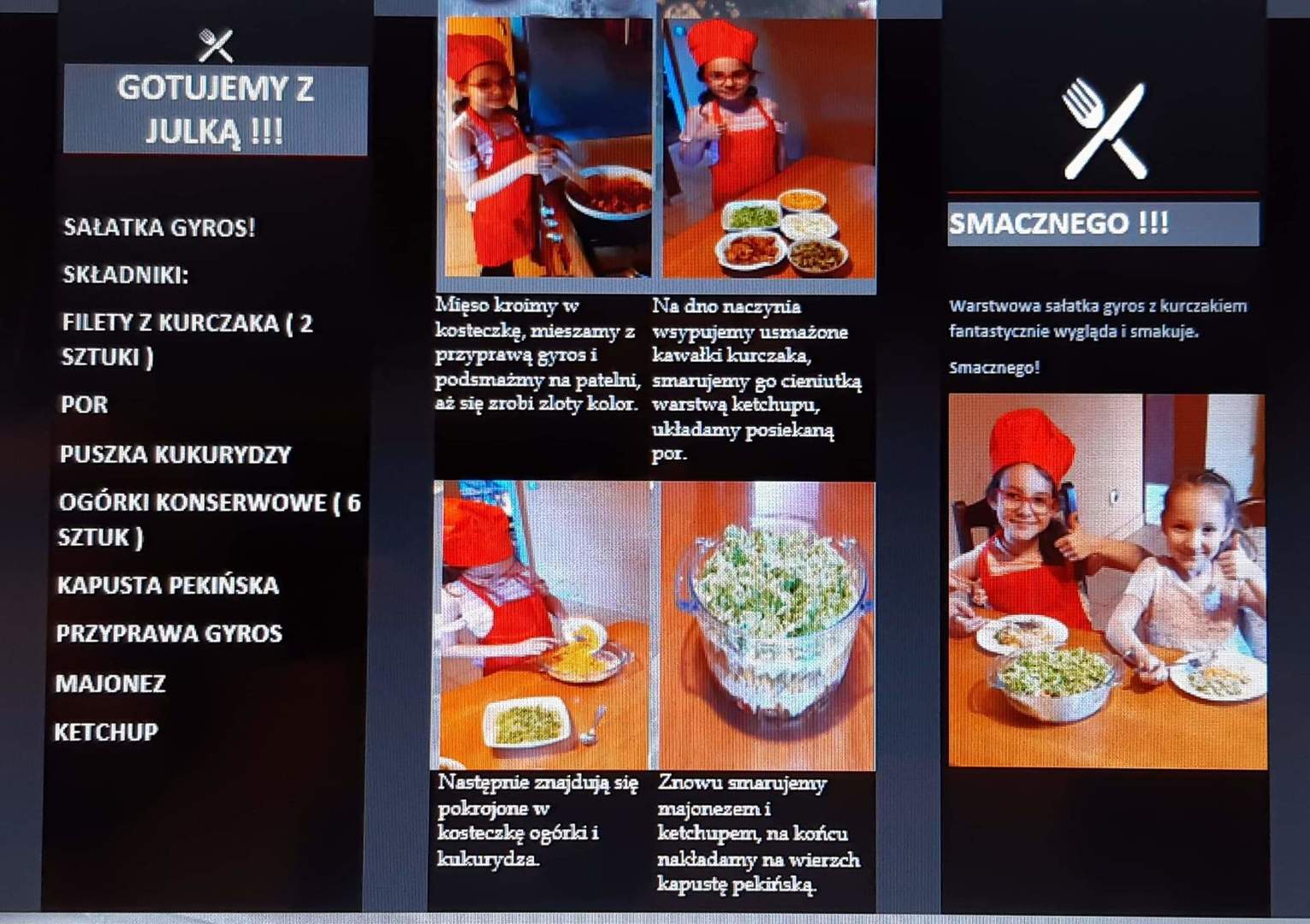 Kolejną odsłonę "Kuchcikowa" przygotowała uczennica klasy drugiej Julka, proponując innym wykonanie Sałatki gyros. Spróbujcie Państwo wypróbować ulubioną sałatkę Julki. Smacznego!