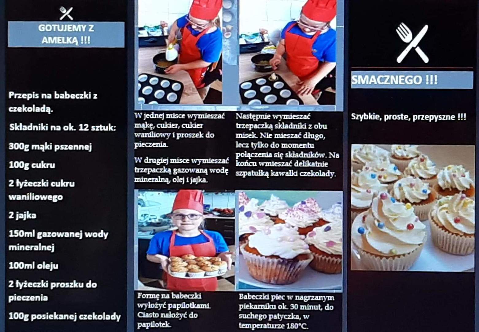Amelia z klasy drugiej zaprasza do wykonania babeczek waniliowych z kawałkami czekolady. Przepis jest prosty i szybki w przygotowaniu, a babeczki uwielbiane przez dzieci.