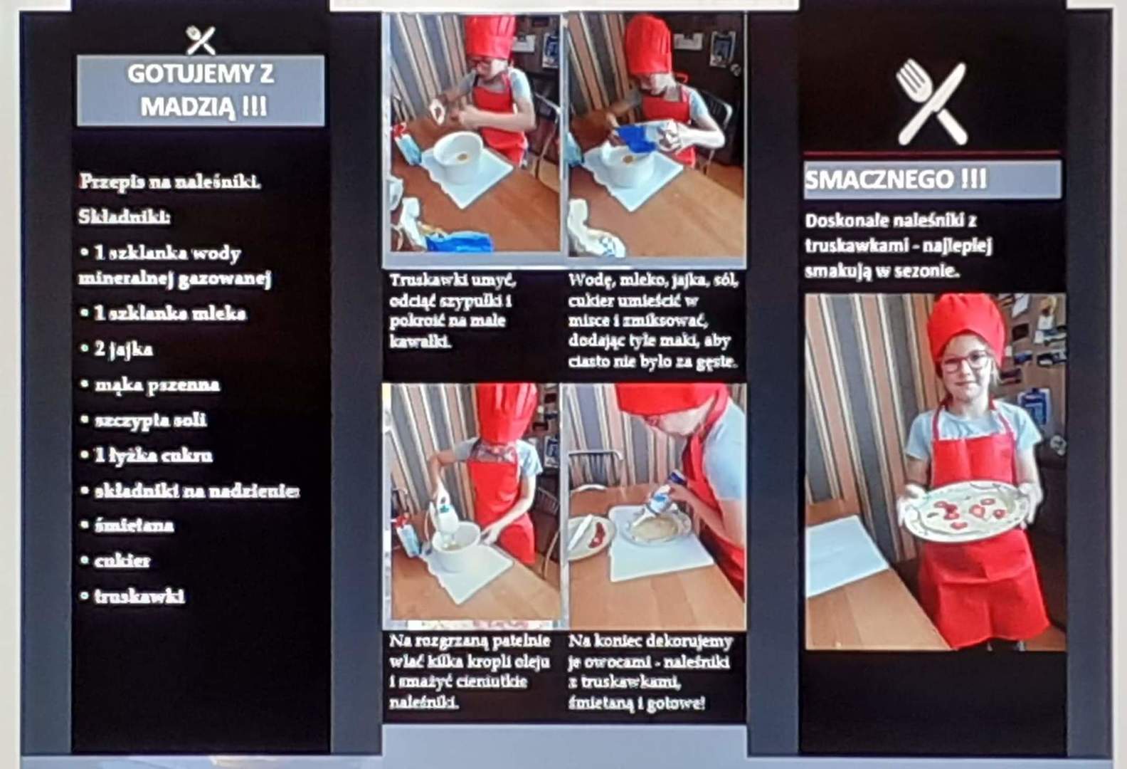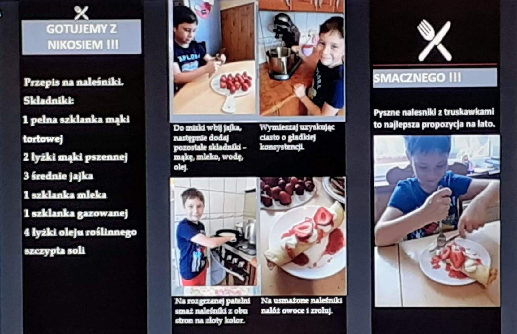 Tym razem uczniowie klasy drugiej: Magda oraz Nikodem przygotowywali naleśniki z truskawkami, które są znakomitym pomysłem nie tylko na śniadanie. Zapraszamy do skorzystania z wybranego przepisu.