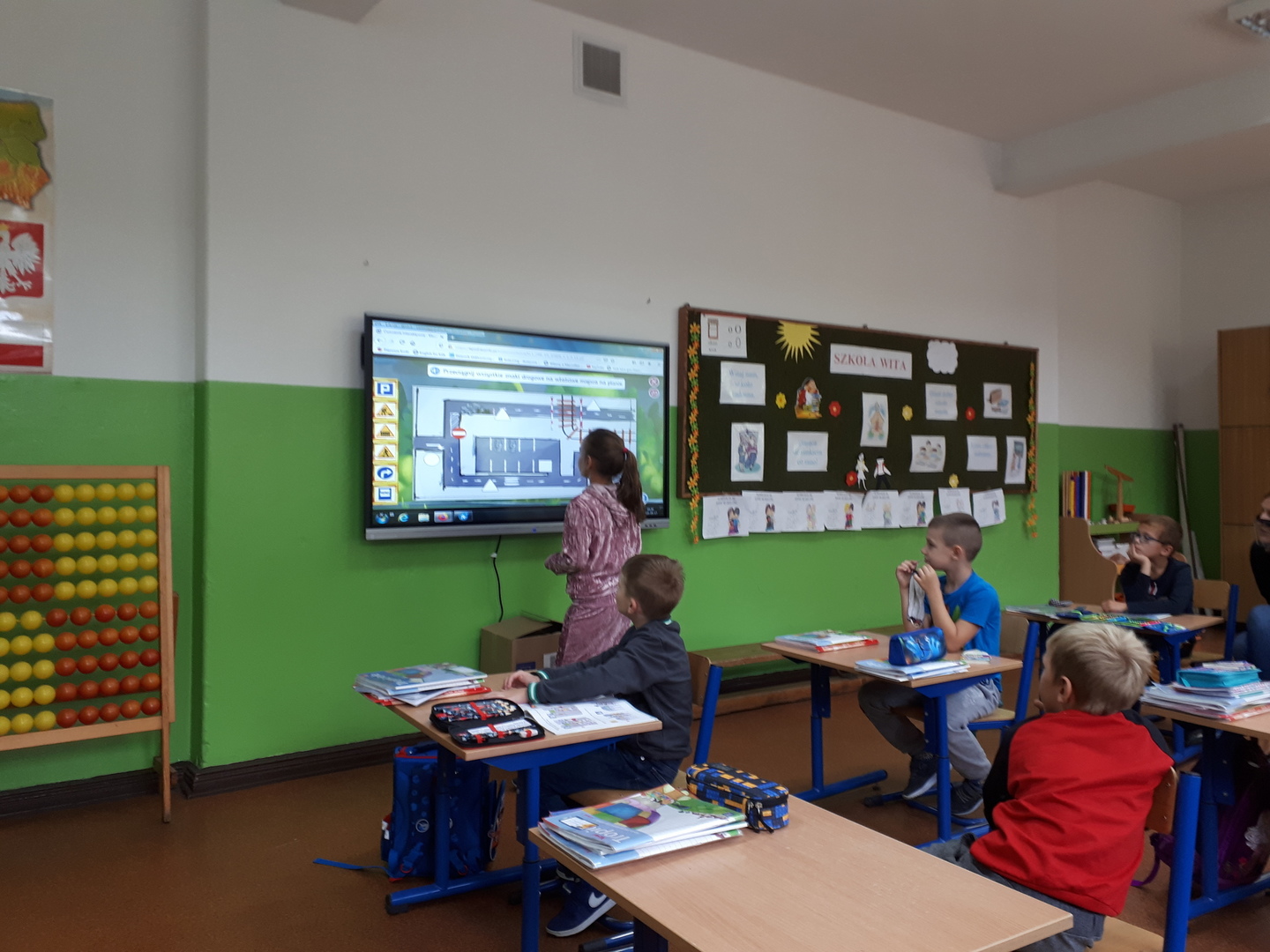 Wraz z początkiem nowego roku szkolnego podczas zajęć edukacyjnych uczniowie naszej szkoły poznają, a także utrwalają swoje wiadomości i umiejętności dotyczące właściwego zachowania się na ulicy. Uczestniczyli już w praktycznych ćwiczeniach przechodzenia przez jezdnię, wykonywali i analizowali makiety sytuacyjne dotyczące przepisów ruchu drogowego, korzystali z gier i zabaw edukacyjnych poświęconych tej tematyce z wykorzystaniem zadań interaktywnych. Dzięki tym działaniom wychowawców między innymi klasy pierwszej i drugiej, najmłodsi uczestnicy ruchu drogowego potrafią być bezpieczni na ulicy.