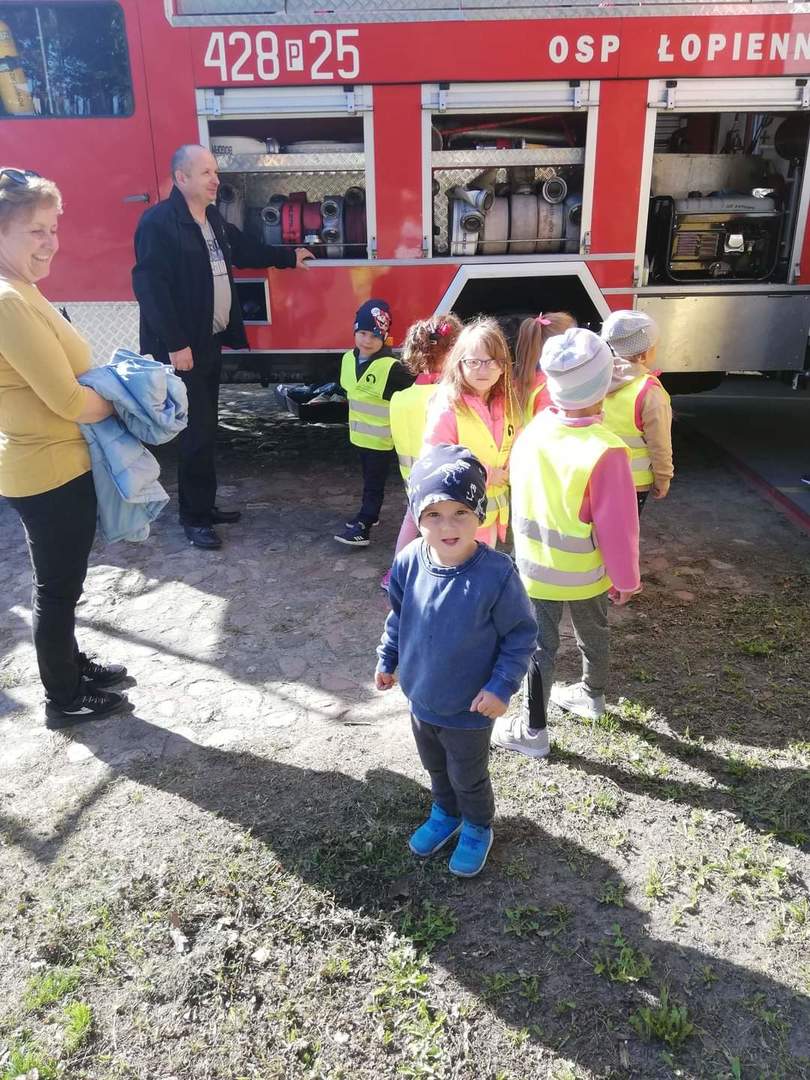 Dzieci z odziału przedszkolnego wzięły udział w wycieczce do OSP w Łopiennie, podczas której dowiedziały się jak wygląda praca strażaków oraz jakim sprzętem się posługują. Wycieczka dostarczyła najmłodszym wielu niezapomnianych wrażeń. Serdecznie dziękujemy strażakom za jej umożliwienie i za wspaniałe spotkanie.