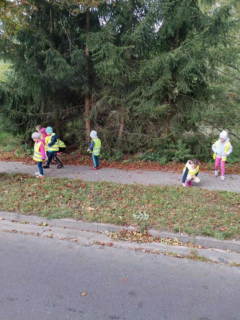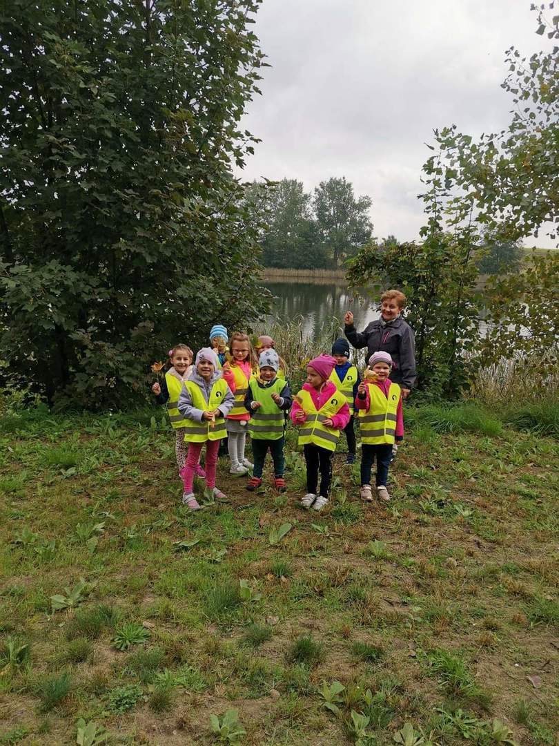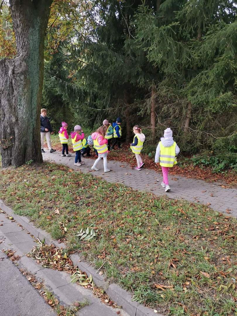 Dzieci z oddziału przedszkolnego podziwiały otaczająca przyrodę oraz zbierały dary jesieni w postaci liści i kasztanów.