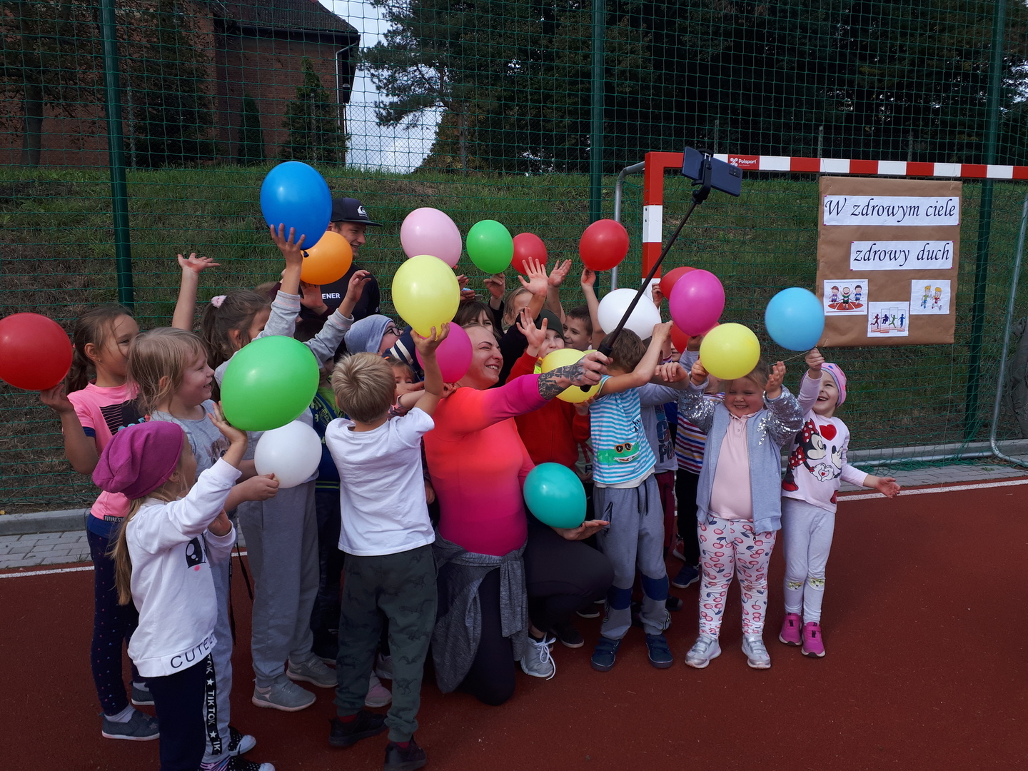 Bardzo ciekawe zajęcia ruchowe poprowadzili zaproszeni przez panią dyrektor goście: pani Karolina Koszela, która jest Mistrzynią Świata WPA w Trójboju, a także wielokrotną Mistrzynią Polski i Europy w boksie oraz pan Bartosz Zieliński, który jest trenerem personalnym,instruktorem oraz zawodnikiem biegów ekstremalnych z przeszkodami. Był to dzień pełen atrakcji i niespodzianek.