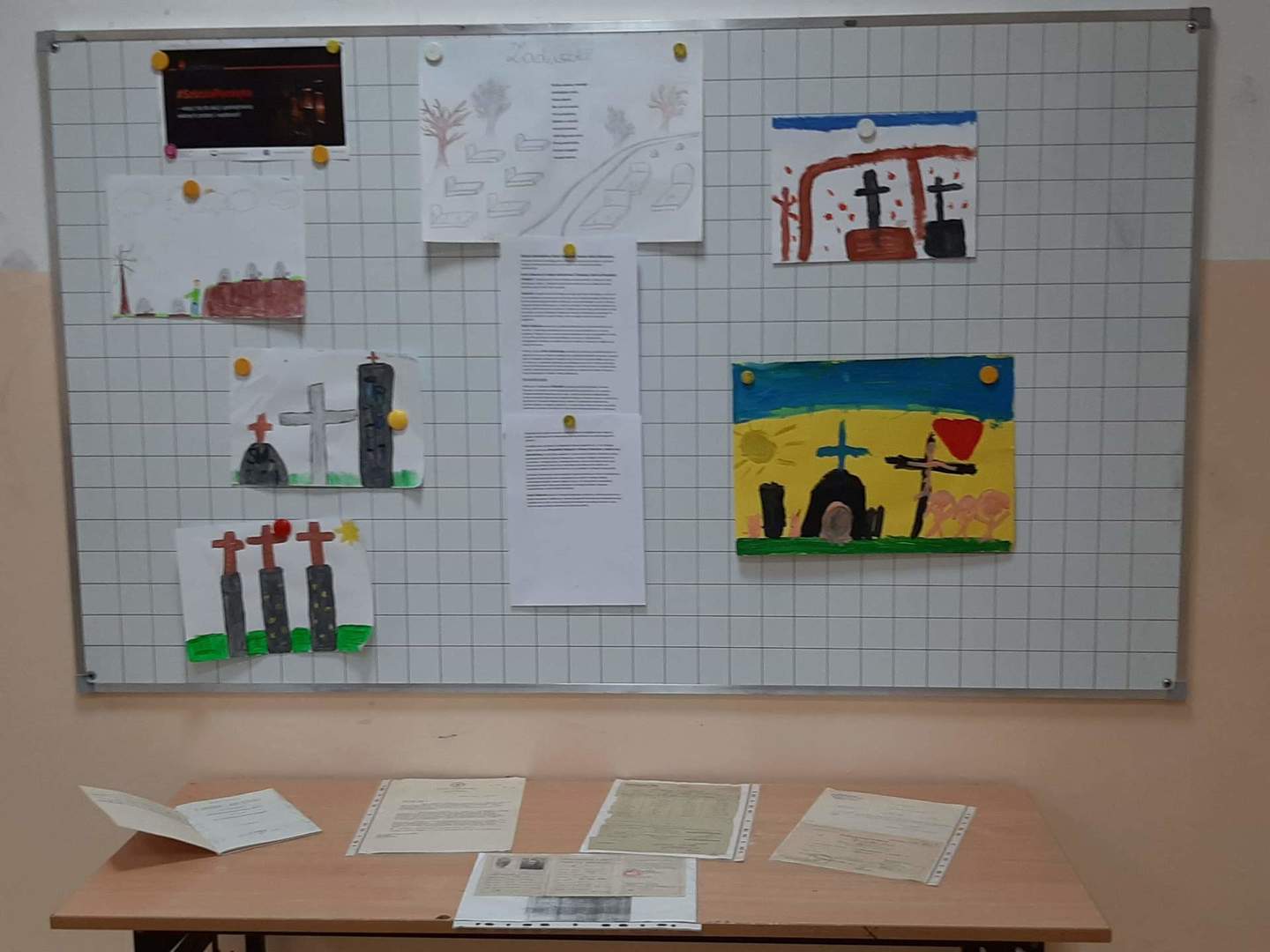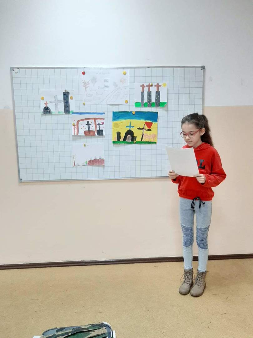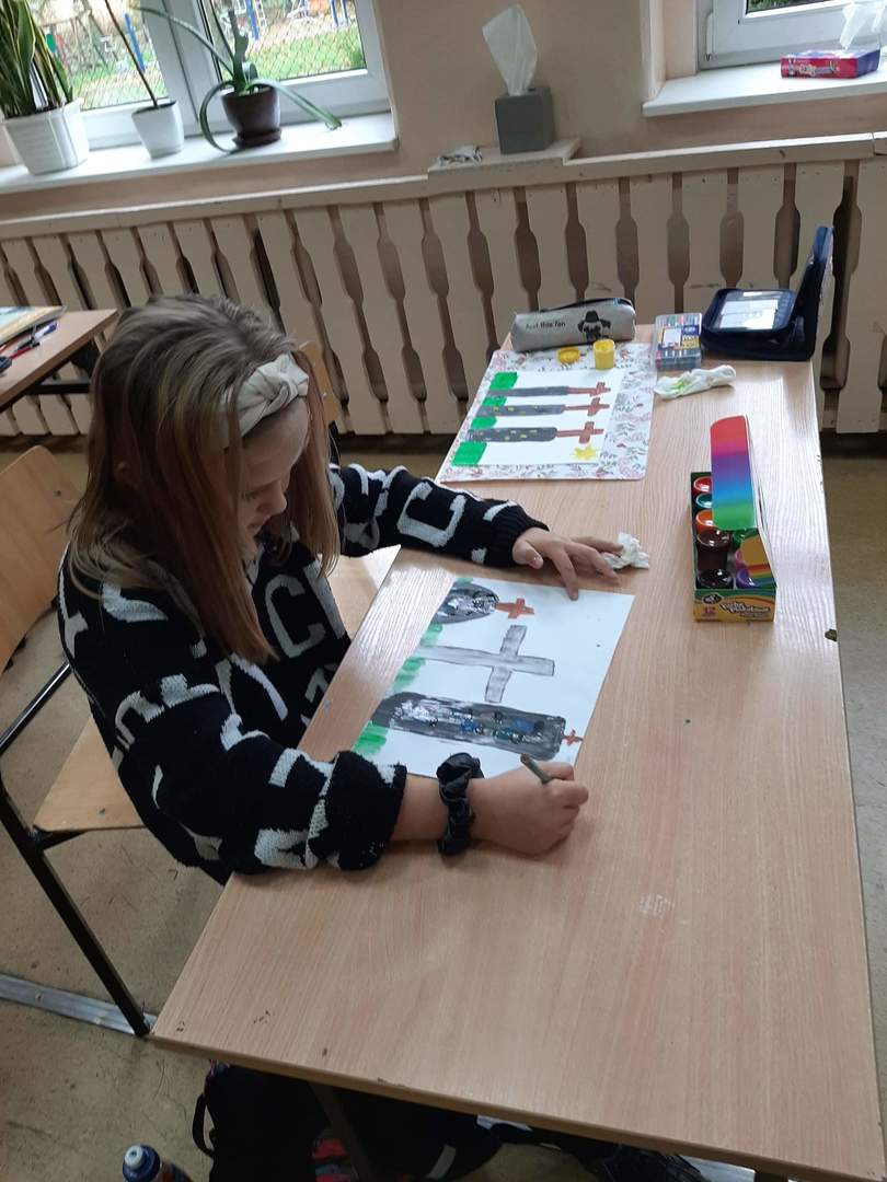 W ramach akcji "Szkoła pamięta" uczniowie klasy 3 zapoznali się z tradycją Święta Zmarłych, przygotowali prace plastyczne nawiązujące do tego dnia oraz zaprezentowali przyniesione pamiątki rodzinne.