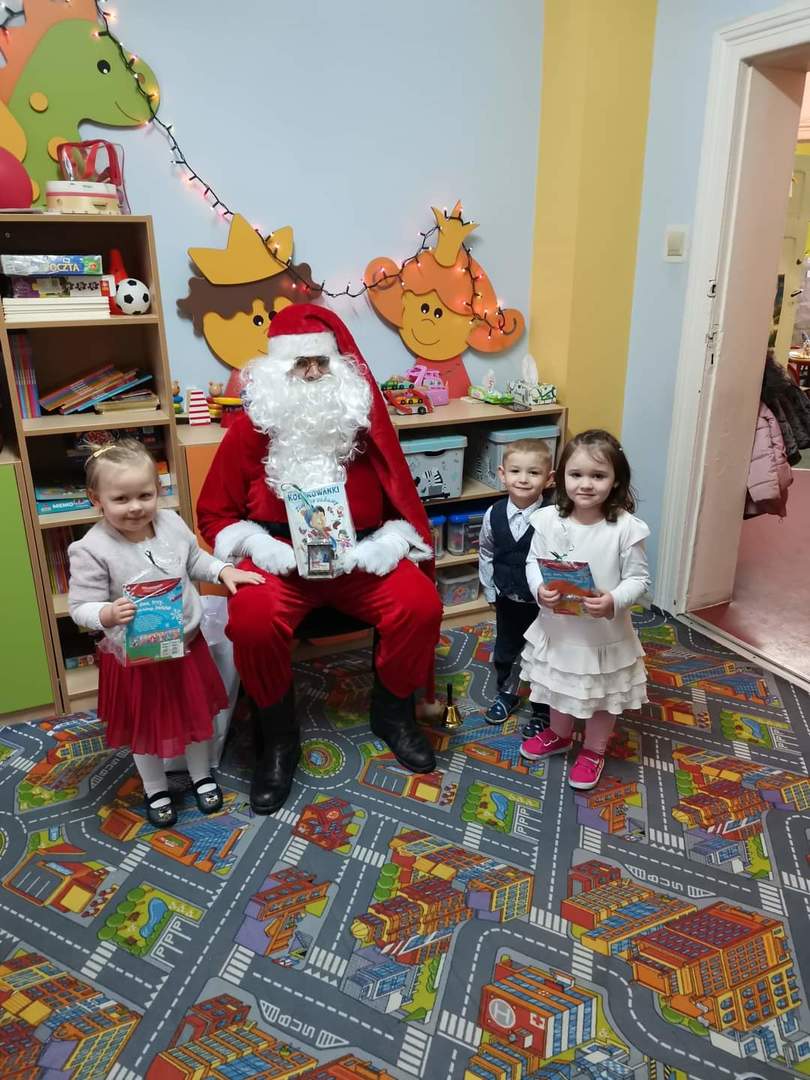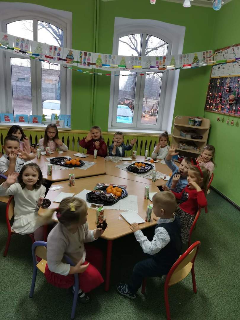22 grudnia odbyło się spotkanie wigilijne w oddziale przedszkolnym. W tym wyjątkowym dniu dzieci składały sobie życzenia, śpiewały kolędy i pastorałki przy wspólnym stole. Gościem specjalnym był Święty Mikołaj, który wręczył dzieciom wspaniałe prezenty. Serdecznie dziękujemy firmie Sklepy spożywcze Jagoda Sam i p. Karolinie Koszela za świąteczne upominki.