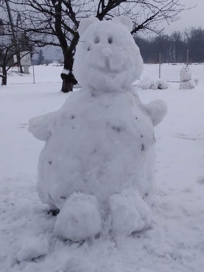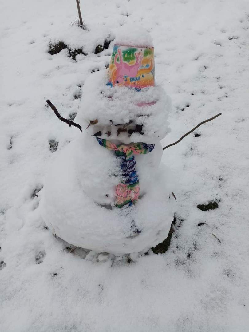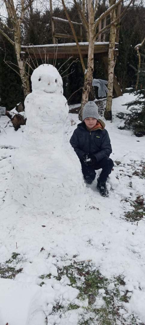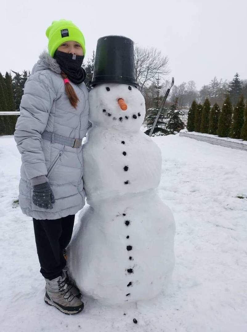 Zimowa aura daje dzieciom wiele radości. Korzystają z ruchu na swieżym powietrzu, lepiąc sympatyczne, śnieżne bałwany.