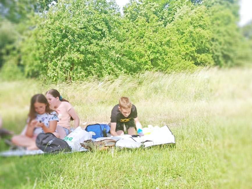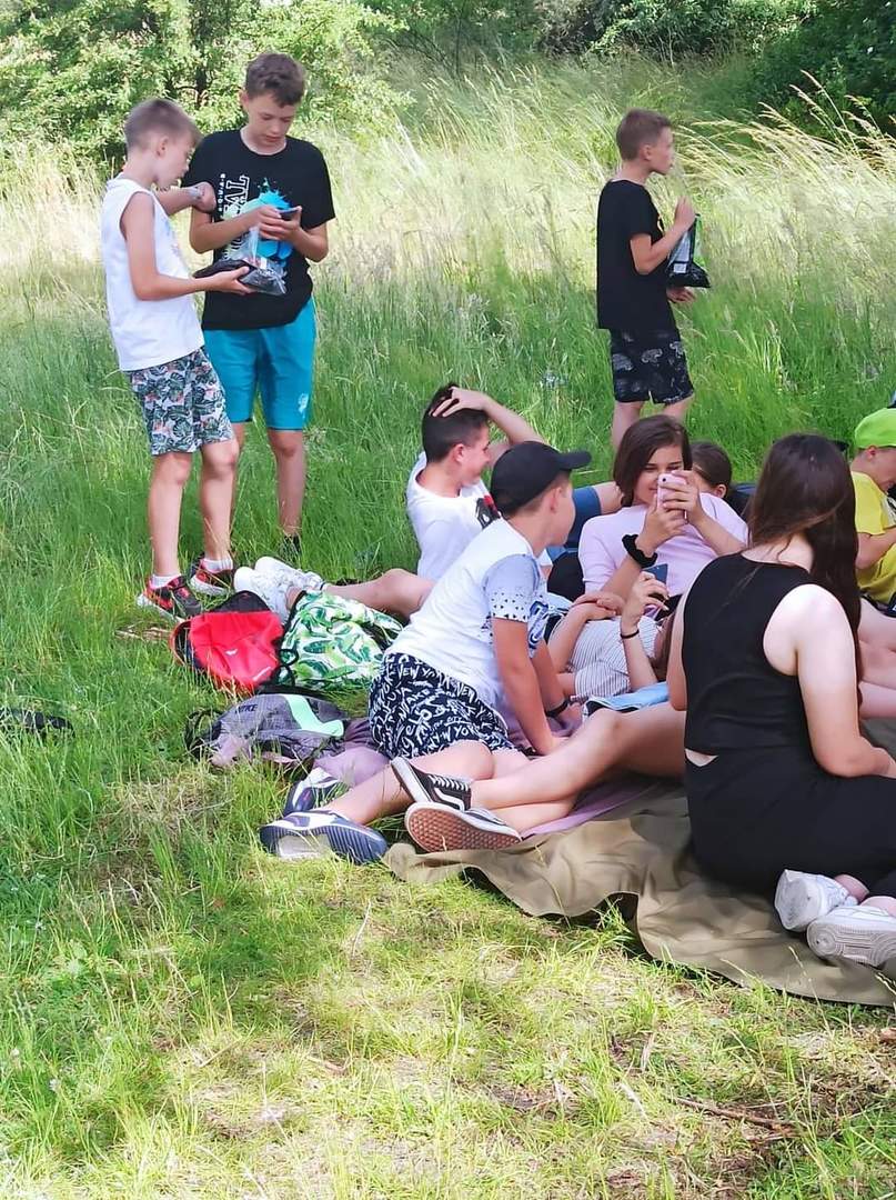 Na powitanie lata uczniowie klas 4,6 i 7 pod opieką swoich wychowawców wybrali się na pieszą wycieczkę po najbliższej okolicy.
