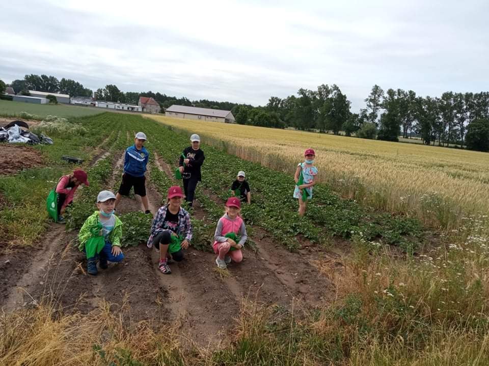 Uczniowie klasy 2 poznawali pracę swoich rodziców, tym razem pracę rolnika. Odwiedzili w tym celu p.Mościckich-rodziców Franka. Dowiedzieli się jakie zwierzęta hodują rolnicy. Poznali różne maszyny ułatwiajace im pracę w gospodarstwie i w polu. Dowiedzieli się, skąd się bierze cukier,jak uprawia ziemniaki i jakie zboża rosną na polu. Na koniec wszyscy uczestniczyli w pikniku i otrzymali od gospodarzy pamiątkowe upominki. Za wszystko bardzo, bardzo serdecznie dziękujemy.