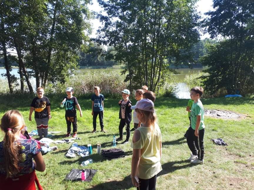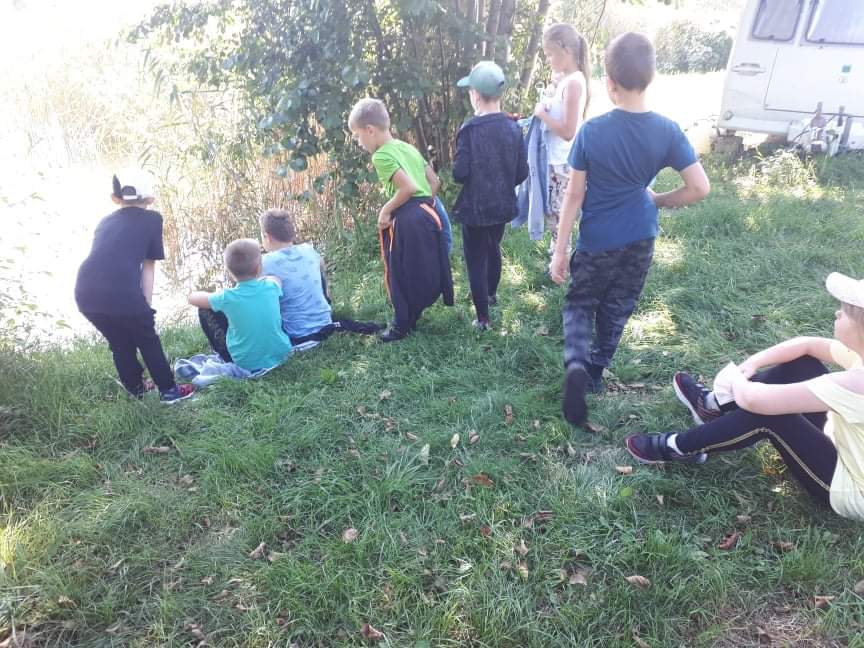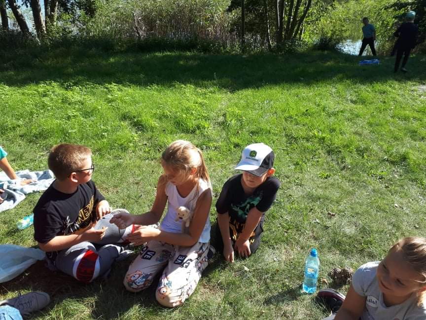 Uczniowie klas 2 i 3 wybrali się pod opieką wychowawców na pieszą wycieczkę do lasu i nad jezioro w poszukiwaniu ostatnich tchnień lata. Spędzili tam wspólnie miłe chwile bawiąc się i prowadząc przyrodnicze obserwacje.