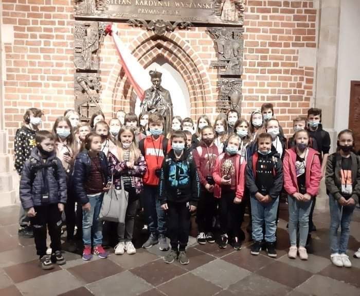 Klasy 4-8 wyjechały na wycieczkę do Katedry Gnieźnieńskiej i muzeum archidiecezjalnego w poszukiwaniu miejsc i pamiątek związanych z Prymasem Tysiąclecia. Zwieńczeniem wycieczki był seans filmowy. Uczniowie obejrzeli film pt."Czarny młyn".
