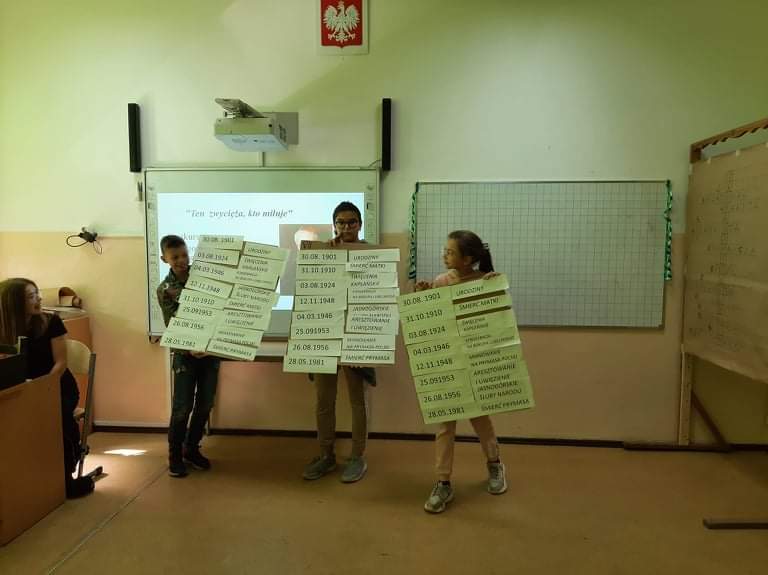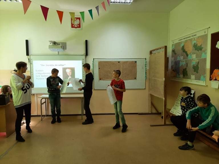 Uczniowie z klas V,VII i VIII wykazali się bogatą wiedzą w konkursie o Błogosławionym Kardynale Stefanie Wyszyńskim. Najlepszy okazał się zespół z klasy V w składzie: Dominika Kucharska, Aleksandra Tarnogrodzka i Dominik Szczepanek. Gratulujemy!