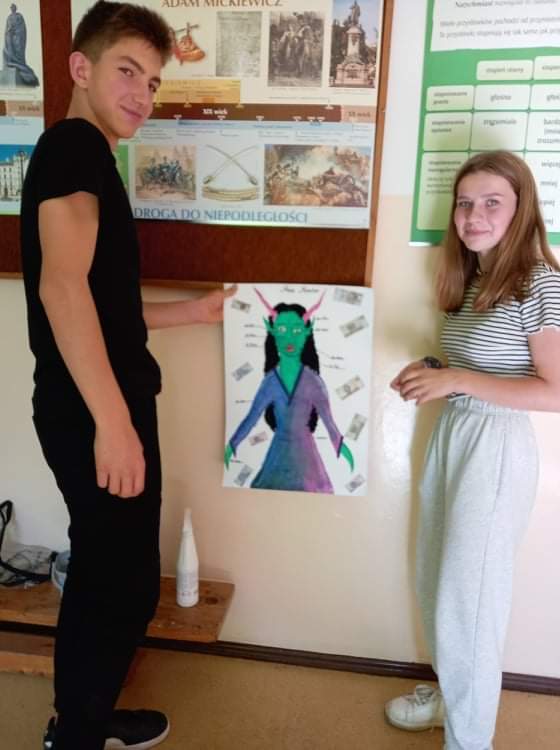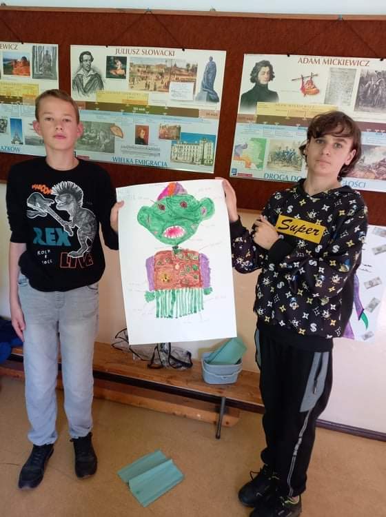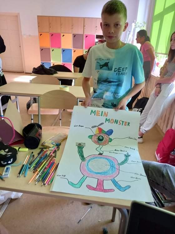 Uczniowie klasy 8 pracowali nad projektem "Mein Monster". Tworzyli śmieszne, dziwne potwory, utrwalając tym samym nazwy części ciała w języku niemieckim. Świetną zabawę udało się połączyć z nauką. Zapraszamy do obejrzenia znakomitych efektów uczniowskiej pracy.