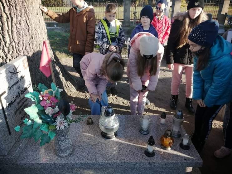Uczniowie naszej szkoły aktywnie uczestniczą w akcji MEiN "Szkoła Pamięta", której celem jest upamiętnienie rocznic, wydarzeń i postaci historycznych. Dzieci z oddziału przedszkolnego i uczniowie wraz z wychowawcami zapalili znicze w miejscach pamięci narodowej oraz na grobach zasłużonych Polaków.