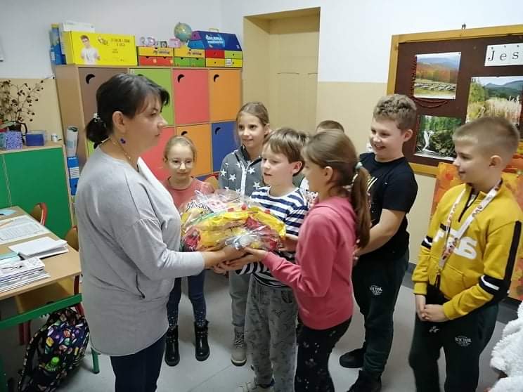 Pani dyrektor Aneta Zielińska nagrodziła uczniów klasy 3 za zaangażowanie i zwycięstwo w akcji "Kasztanobranie". Jeszcze raz gratulujemy.