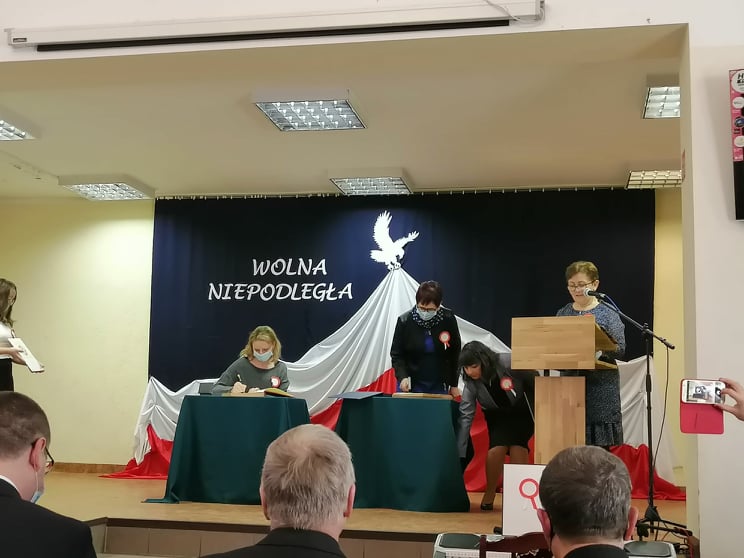 Uroczysta akademia miała podniosły charakter. Uświetnili ją swoją obecnością przedstawiciele władzy powiatowej – pani A. Jung – Wicestarosta Powiatu Gnieźnieńskiego, pan D. Pilak – Przewodniczący Rady Powiatu Gnieźnieńskiego; władzy gminnej: Pan A. Hańczak – Wójt Gminy Mieleszyn, Pan A. Pilarowski – Przewodniczący Rady Gminy Mieleszyn. Wszystkim przybyłym serdecznie dziękujemy.