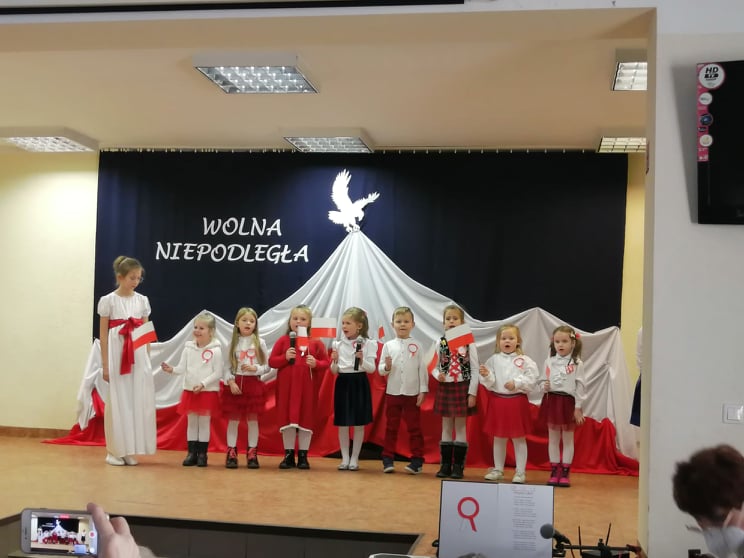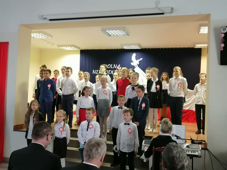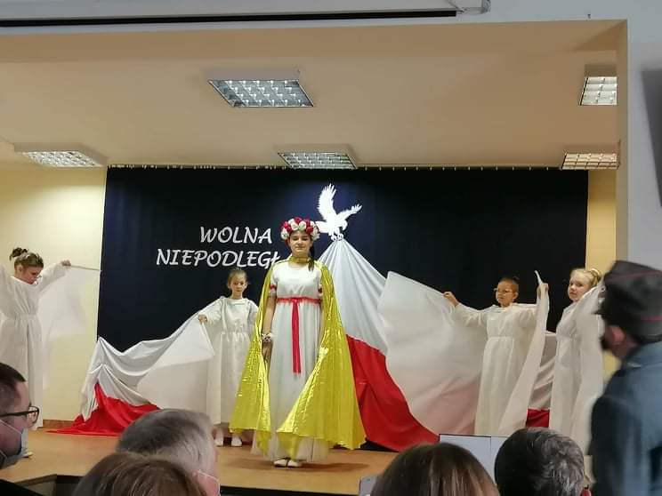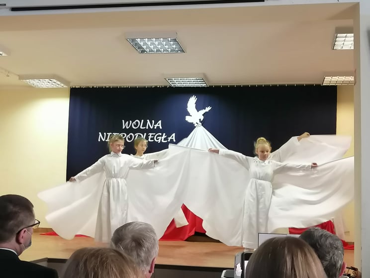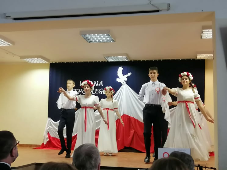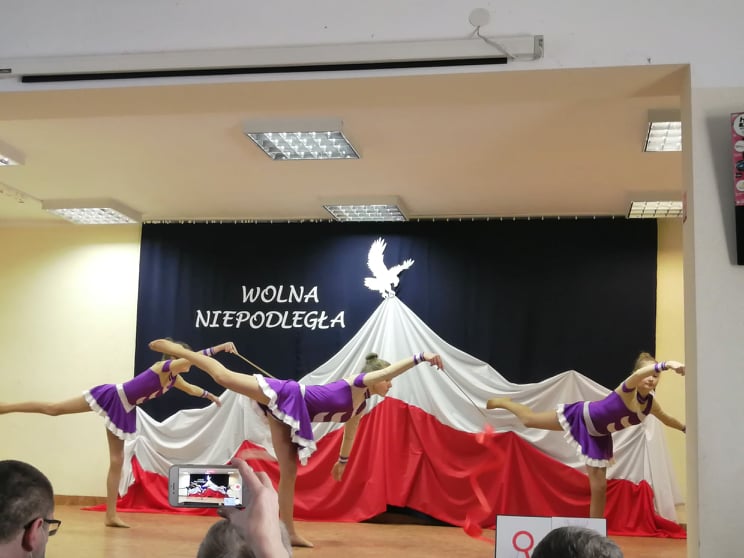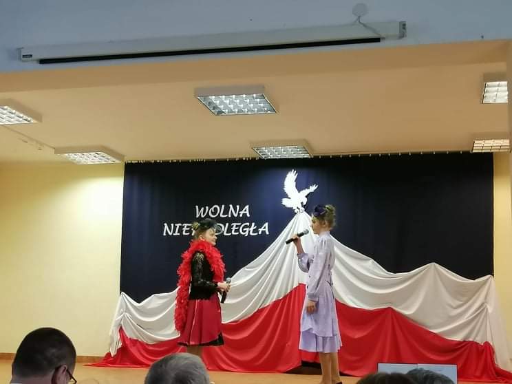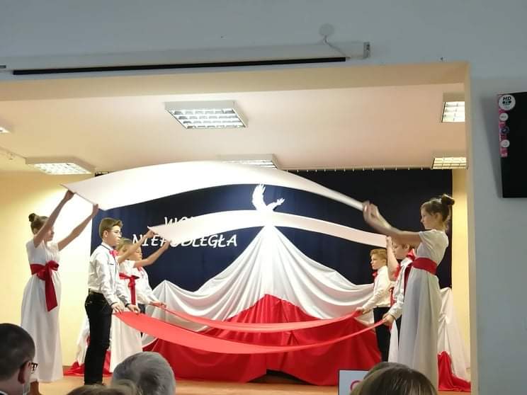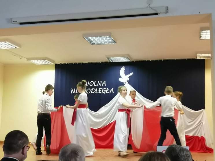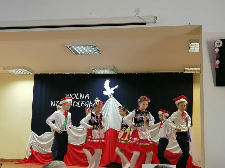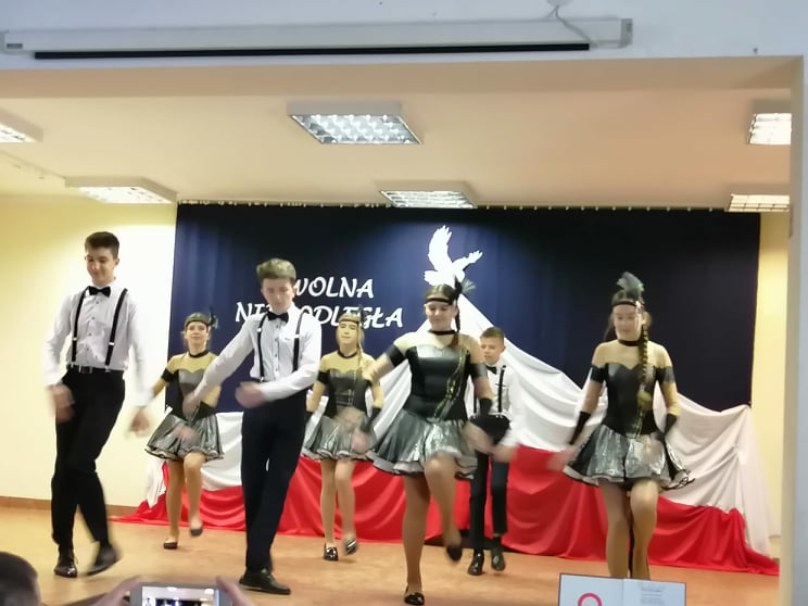 Kolejnym wydarzeniem apelu była część artystyczna w wykonaniu uczniów naszej szkoły. Przedstawili oni montaż słowno-muzyczno-taneczny. Były tańce narodowe i rozrywkowe, wiersze oraz scenki z życia Polaków pod zaborami i w wolnej Ojczyźnie, a także wspólnie śpiewane pieśni patriotyczne.