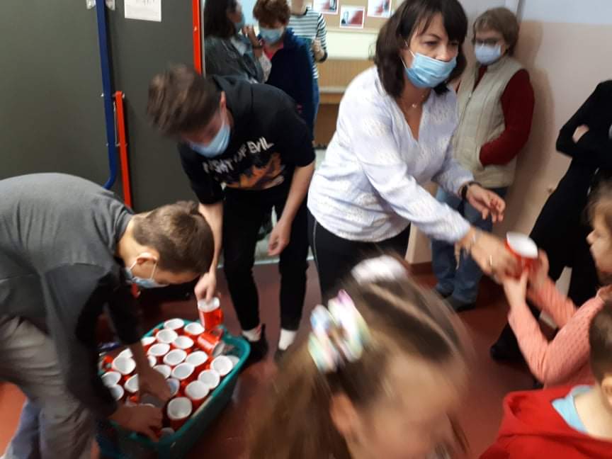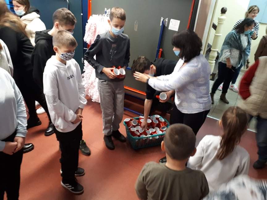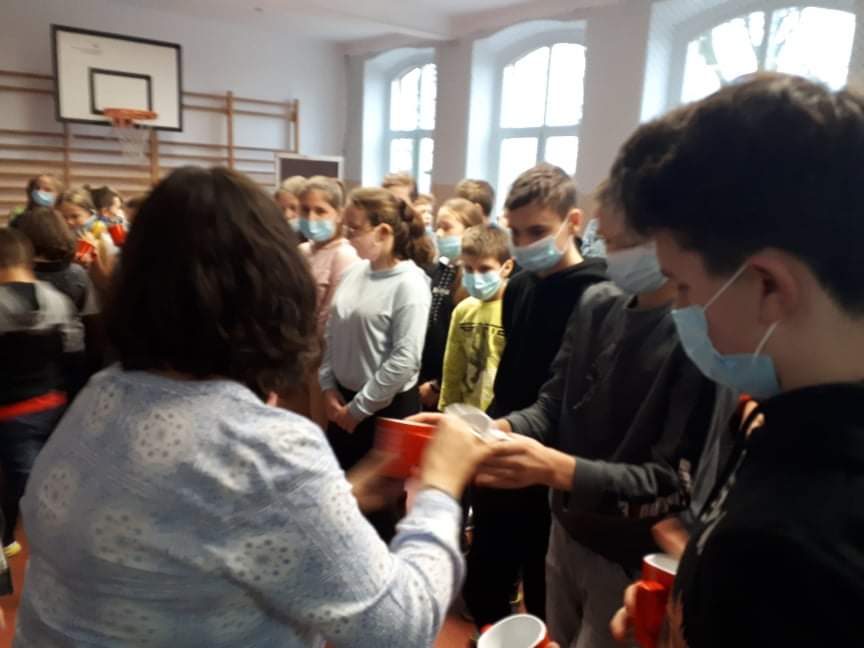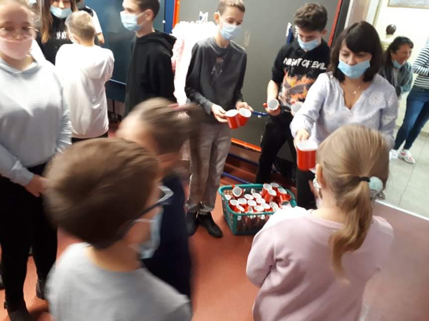 Dyrektor szkoły Pani Aneta Zielińska wręczyła każdemu uczniowi biało-czerwony kubek, będący symboliczną pamiątką tegorocznych obchodów Święta Niepodległości i Święta Patrona naszej szkoły w pierwszą rocznicę nadania jej imienia. Serdecznie dziękujemy sponsorowi - Jagoda SAM - Gniezno.