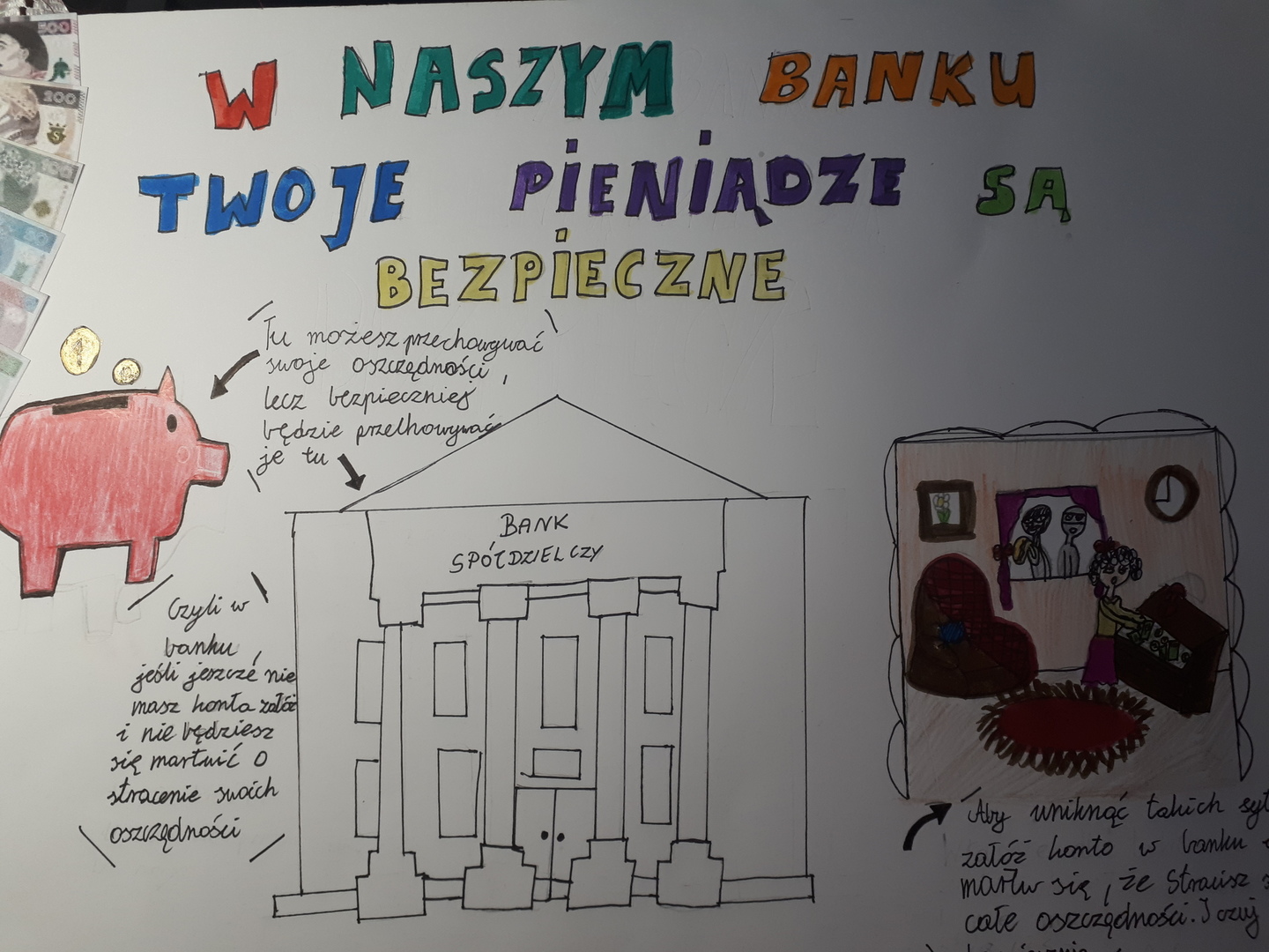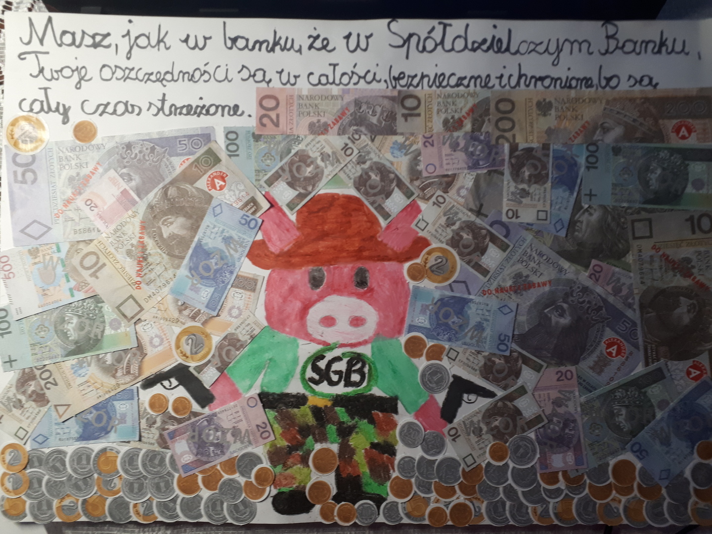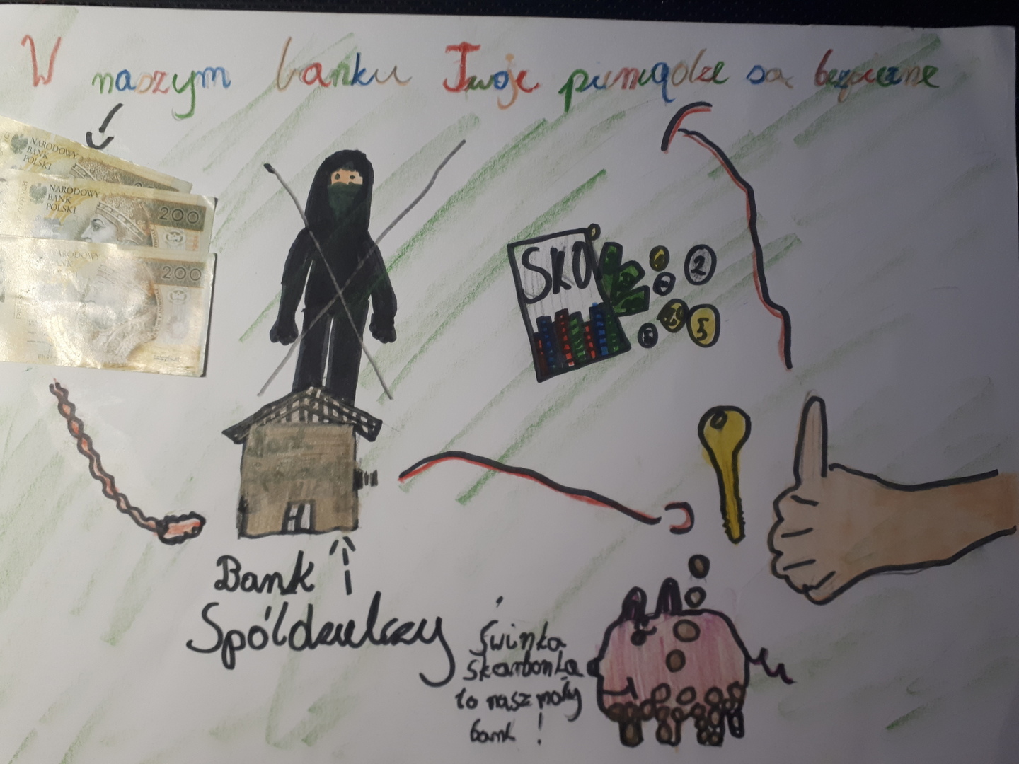 Grupa 19 uczniów naszej szkoły wzięła udział w konkursie Szkolnej Kasy Oszczędności pod patronatem Banku Spółdzielczego w Gnieźnie. Uczniowie przygotowali prace konkursowe do hasła: "W naszym Banku Twoje pieniądze są bezpieczne". Celem konkursu było zachęcenie uczniów do oszczędzania swoich pieniędzy między innymi na książeczkach SKO. Zapraszamy do obejrzenia fotogalerii przedstawiającej efekty uczniowskiej pracy.