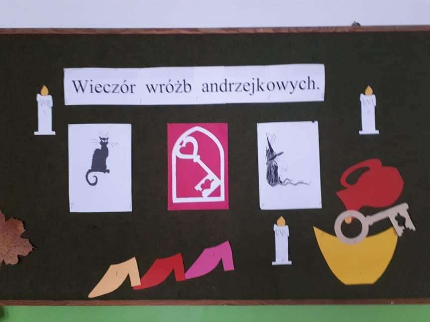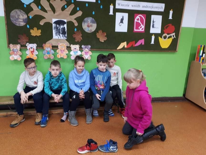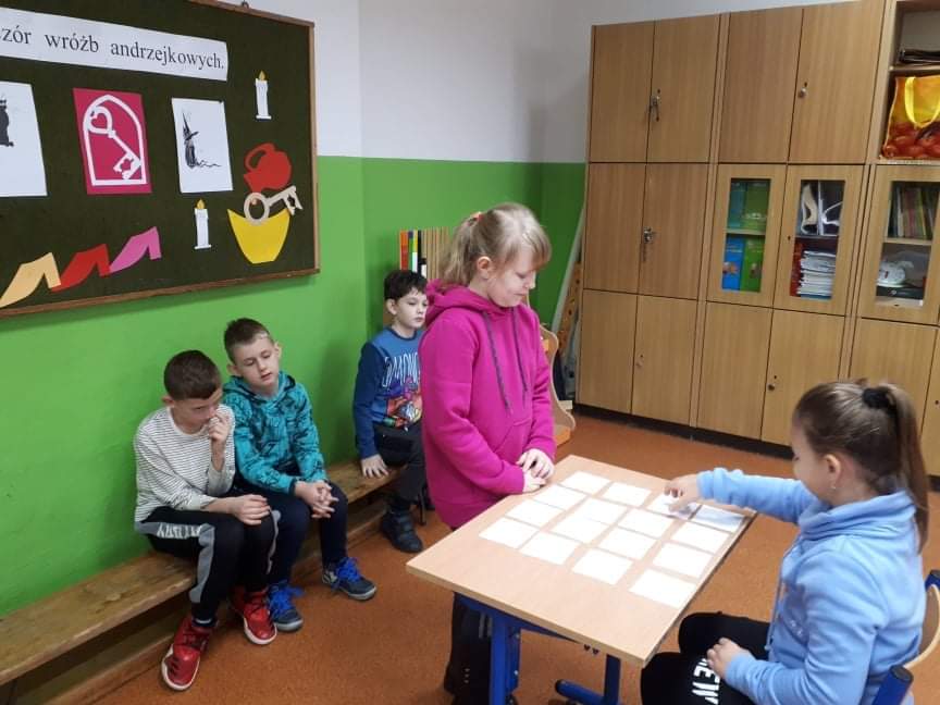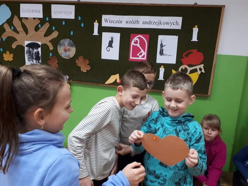 W dniu dzisiejszym odbyły się zajęcia, podczas których uczniowie klasy 1 i 2 znakomicie bawili się i integrowali, poznając tradycyjne wróżby andrzejkowe.