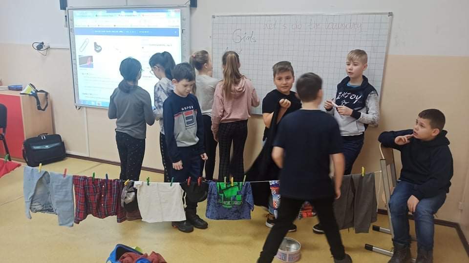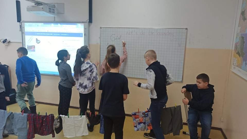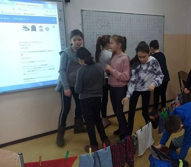W ramach projektu "Jak zrobić pranie?" klasa 4 na lekcji języka angielskiego poznała i utrwaliła słownictwo dotyczące części garderoby. Zabawy było co niemiara.