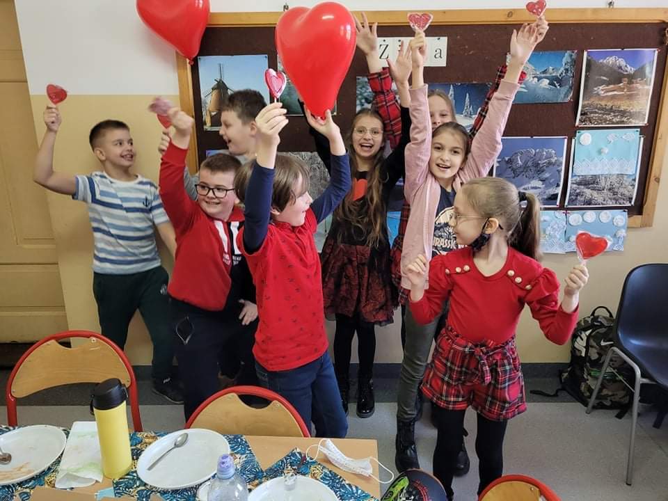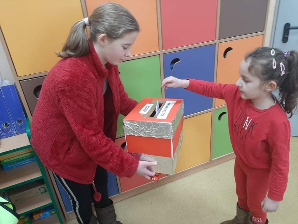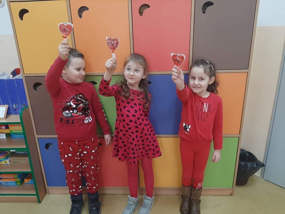 Dzisiejszy dzień - 14 lutego był okazją, by powiedzieć komuś coś miłego... Pomocna w tym okazała się specjalnie uruchomiona "Poczta Walentynkowa", za pomocą której dzieci wysyłały kartki do swoich sympatii. Nie zabrakło też wspólnych zabaw, słodkich poczęstunków i serdecznych gestów. To był niezwykle miły i radosny dzień.