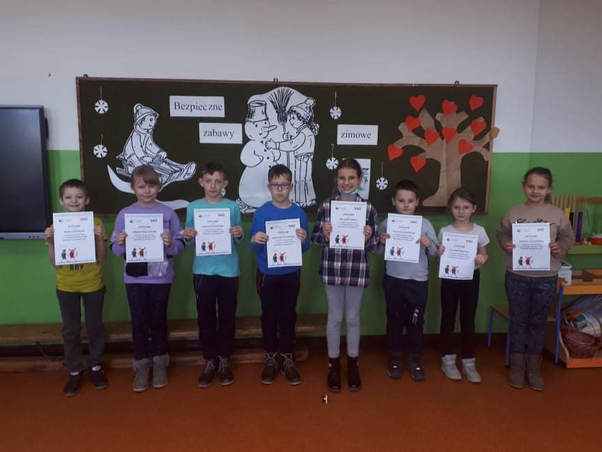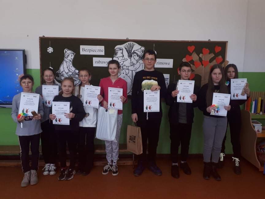 W dniu dzisiejszym uczniowie klas 1-3 oraz 4-8 mieli przyjemność odebrać swoje nagrody za udział w konkursie Szkolnej Kasy Oszczędności pod hasłem "W naszym banku Twoje pieniądze są bezpieczne". Troje uczestników tj.: Agata Grzechowiak, Dominika Kucharska i Jakub Kochanowicz otrzymało nagrody główne; pozostali uczniowie zostali nagrodzeni dyplomami i drobnymi upominkami, których fundatorem był BS w Gnieźnie. Wszystkim uczestnikom konkursu gratulujemy talentu plastycznego oraz twórczego podejścia do realizowanego tematu. Brawo!