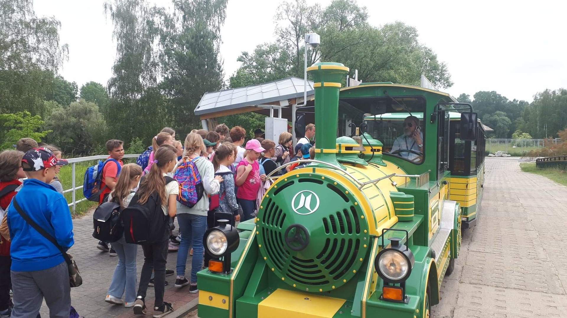 W dniu dzisiejszym uczniowie klas I-V naszej szkoły oraz przedszkolaki wraz z opiekunami wyjechali do Poznania, gdzie czekały na nich wspaniałe atrakcje. Pierwszą z nich było obejrzenie spektaklu teatralnego w Teatrze Animacji pt. "Nowe szaty króla", a kolejną wycieczka edukacyjna po nowym ZOO, gdzie uczniowie poznawali różnorodność świata zwierząt pochodzących z różnych kontynentów i krain geograficznych. Dzieci okazywały zadowolenie, że mogły razem pojechać na tak ciekawą, pełną wrażeń wycieczkę.