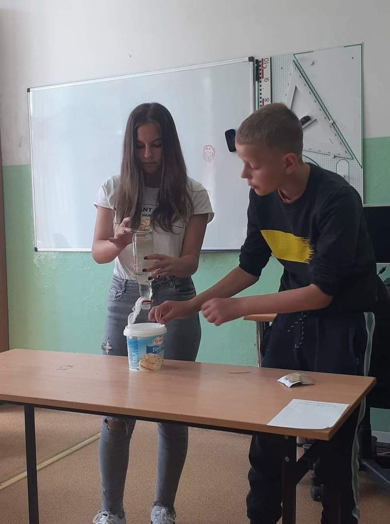 Uczniowie klasy siódmej i ósmej samodzielnie przygotowali i wykonali proste eksperymenty fizyczne. Każdy choć na chwilę stał się fizykiem-eksperymentatorem i czerpał z tego wiele satysfakcji