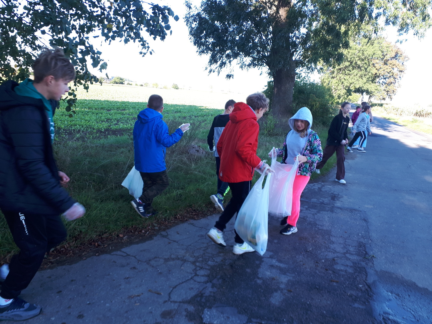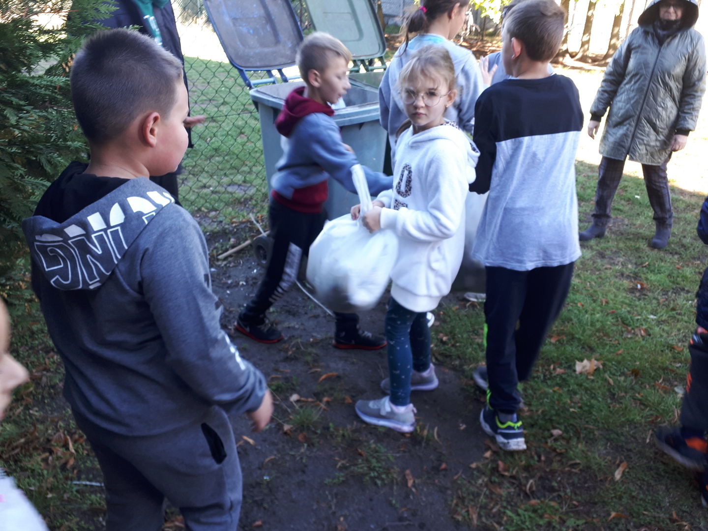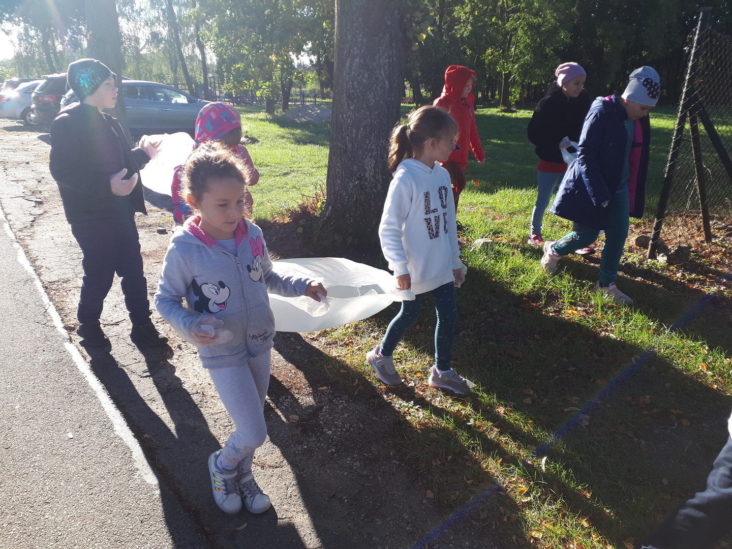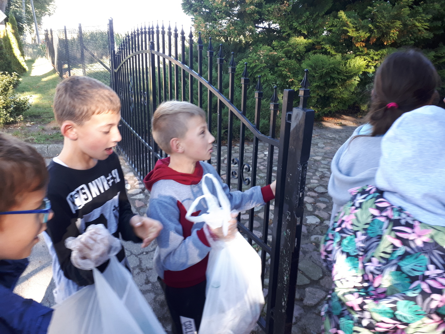 Wrzesień to miesiąc, w kórym jak co roku włączamy się w akcję "Sprzatanie Świata", która jest dla uczniów aktywną formą edukacji ekologicznej oraz rzeczywistą lekcją ochrony środowiska, dzięki której uczą się bardziej przyjaznego stosunku do naszej planety. W dniu dzisiejszym zarówno młodsi, jak i starsi uczniowie naszej szkoły wyruszyli pod okiem wychowawców na porządkowanie terenu wokół szkoły i jej okolicy. Wszyscy uczestnicy otrzymali plastikowe worki na śmieci i ochronne rękawiczki. Dzieci bardzo zaangażowały się w tę akcję i dokładnie wykonały swoje zadanie.