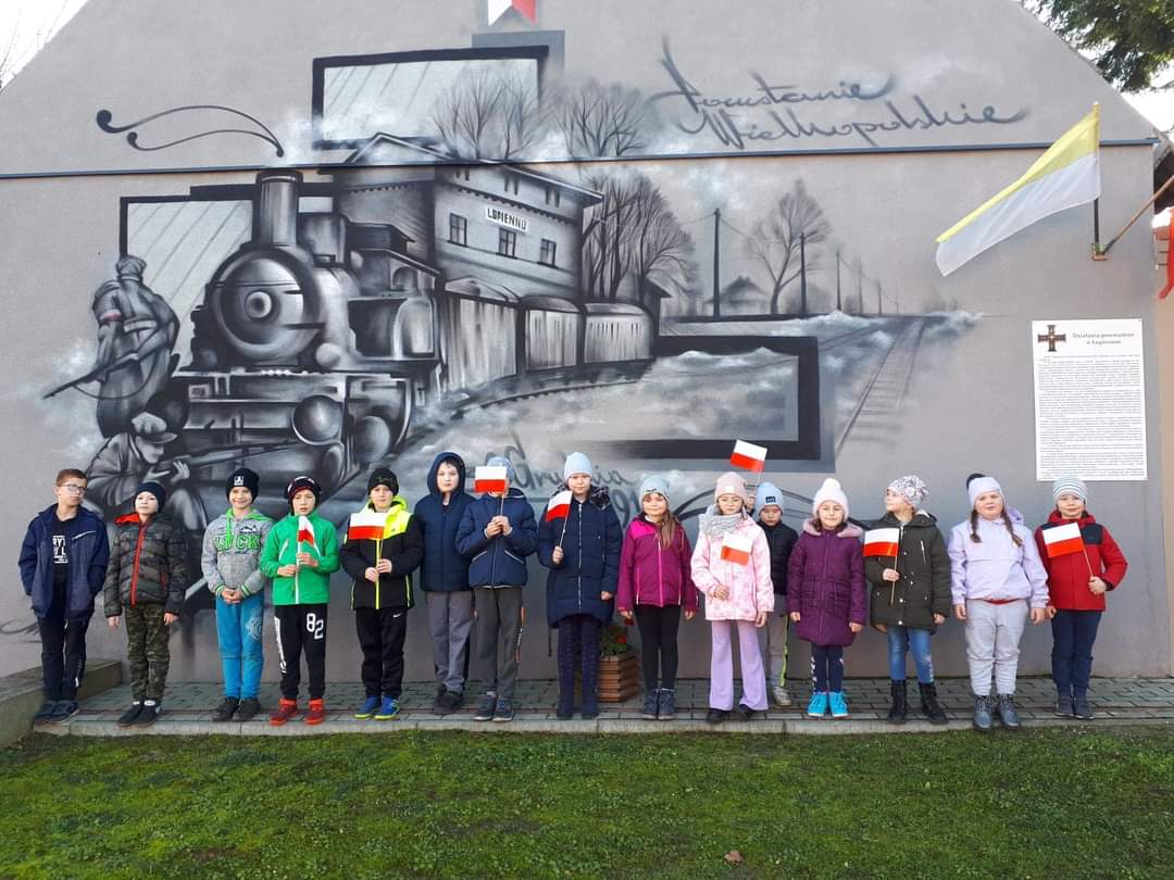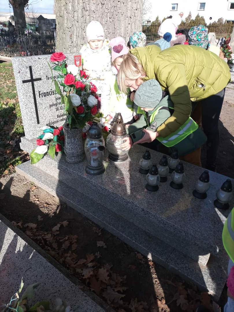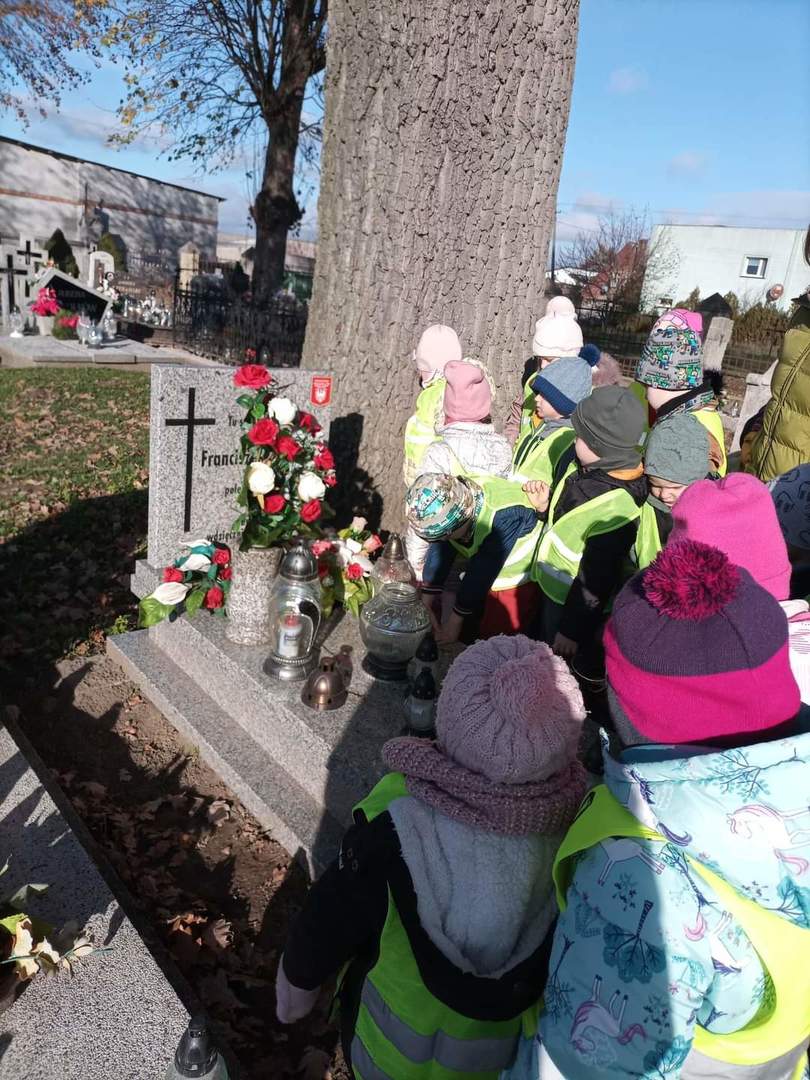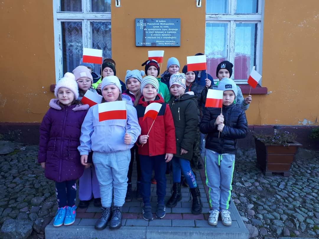 Dla uczczenia przypadającego 11 listopada Narodowego Święta Niepodległości i Dnia Patrona naszej szkoły, już w dniu dzisiejszym przedszkolaki oraz uczniowie klas I-III odwiedzili pod opieką wychowawców miejsca pamięci narodowej w naszej miejscowości.