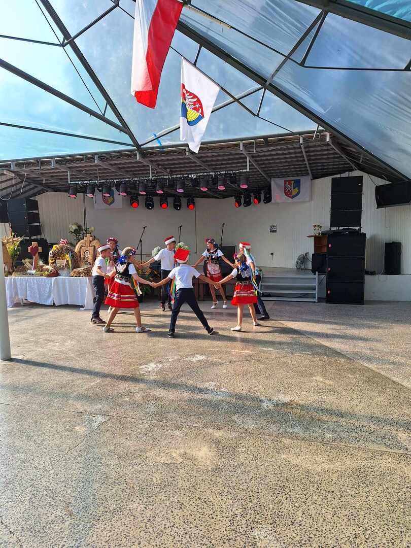 Uczniowie naszej szkoły aktywnie uczestniczyli w tegorocznych dożynkach, które odbyły się w sobotnie popołudnie 19 sierpnia 2023r. na terenie Campingu Borzątew.
