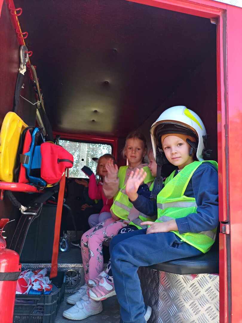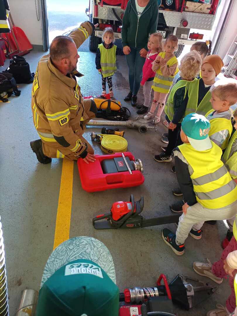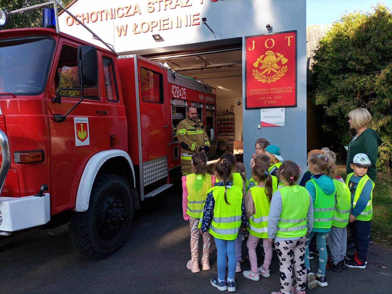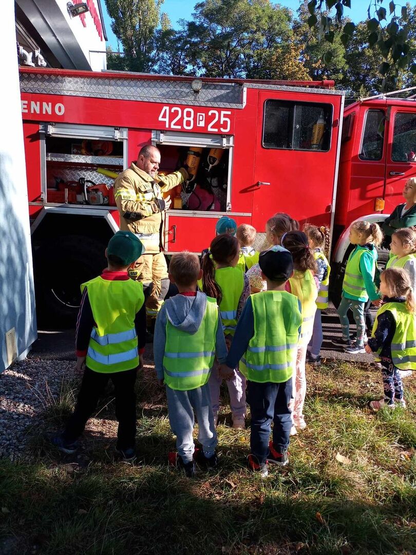 25 września odbyła się wycieczka przedszkolaków do remizy OSP Łopienno, podczas której dzieci poznawały tajniki pracy strażaka.  🔥👩‍🚒🚒