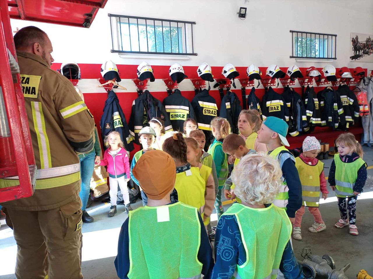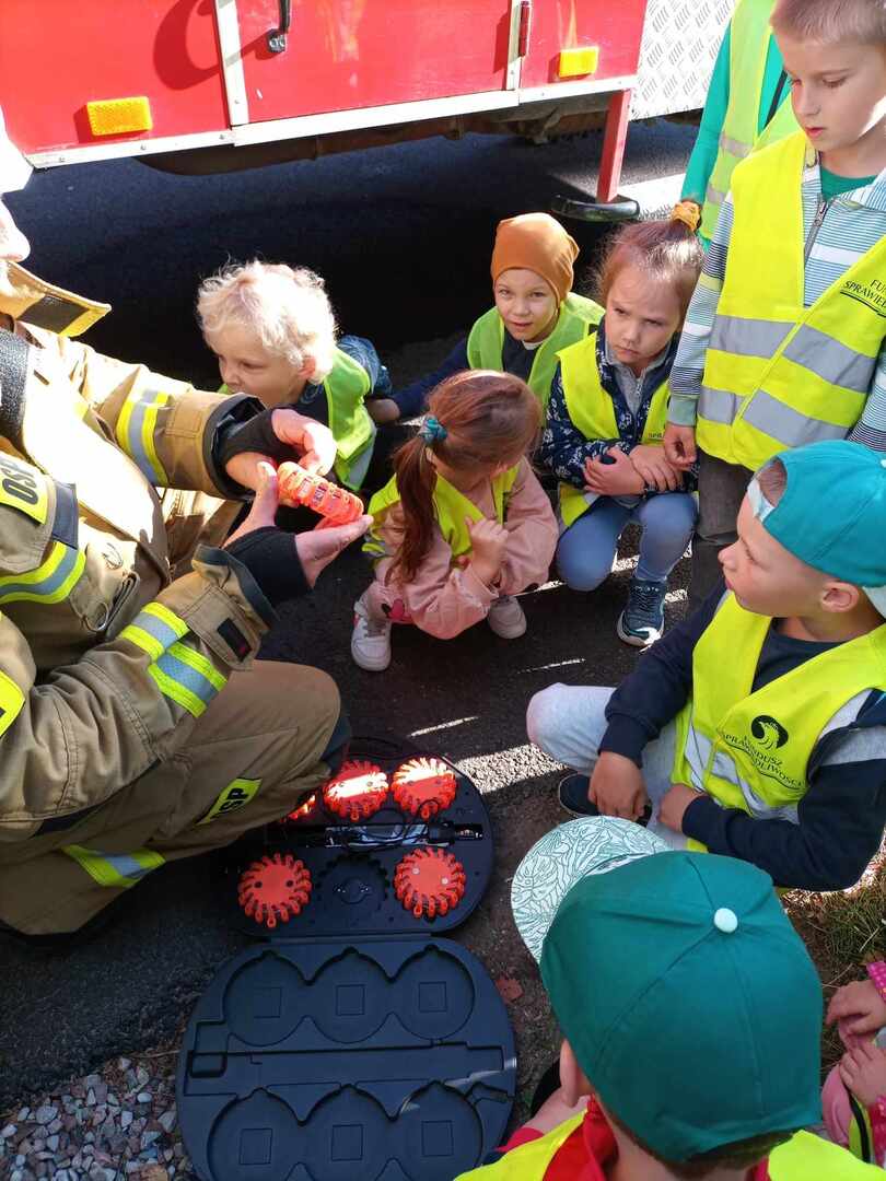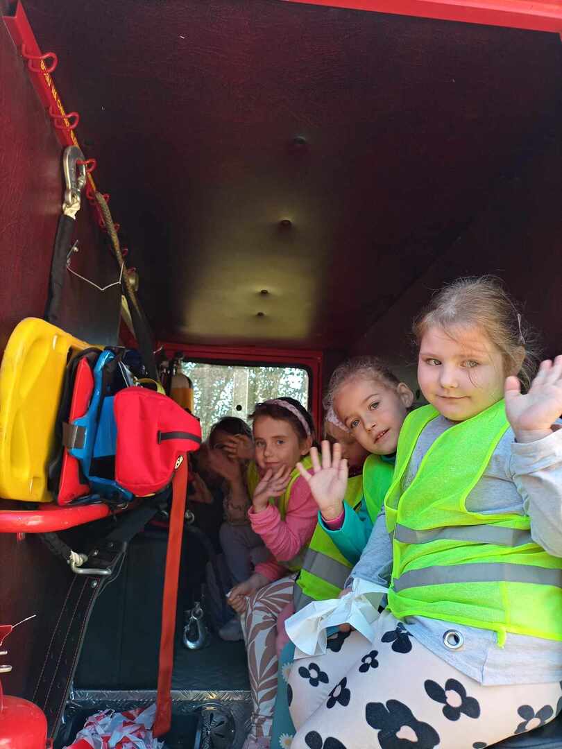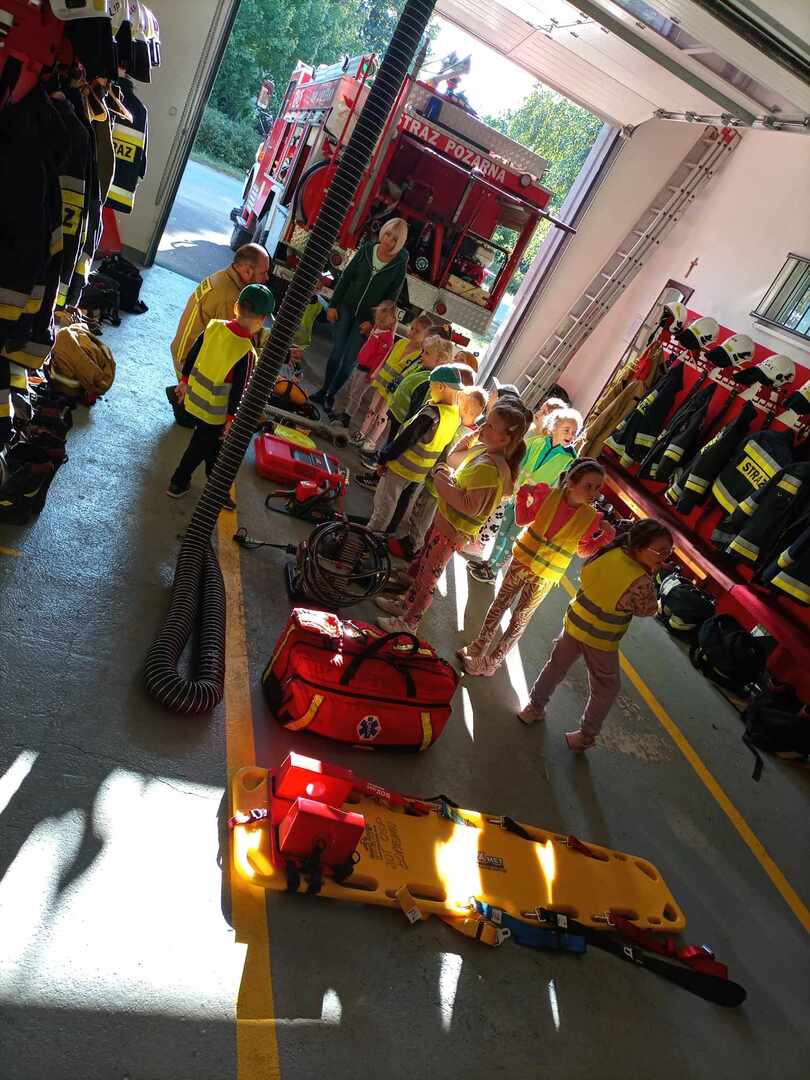 25 września odbyła się wycieczka przedszkolaków do remizy OSP Łopienno, podczas której dzieci poznawały tajniki pracy strażaka.  🔥👩‍🚒🚒