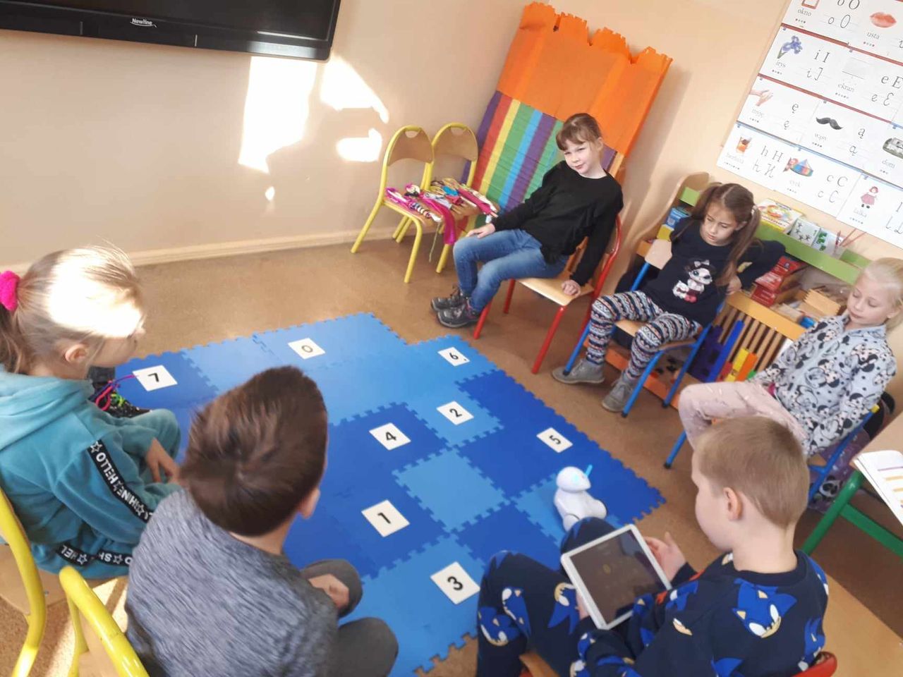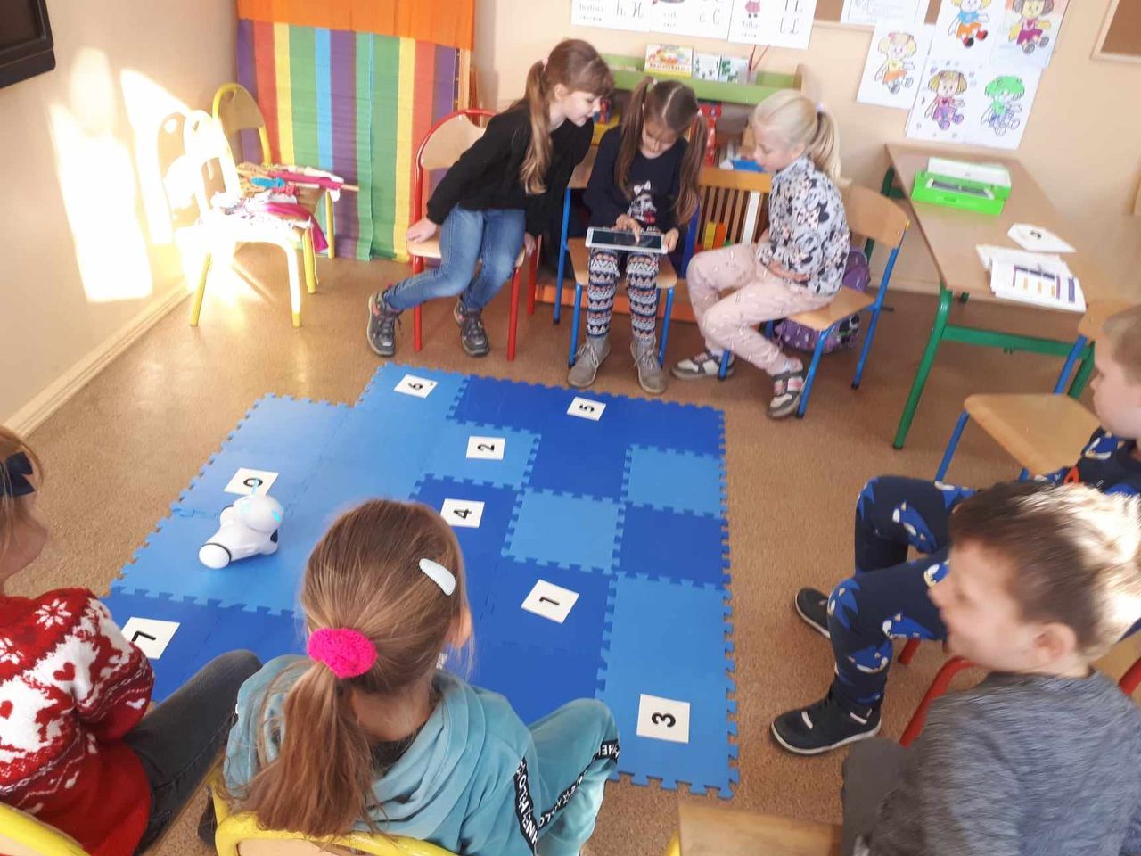 Uczniowie klasy 1 doskonalą umiejętność logicznego myślenia, sprawnego liczenia i naukę podstaw progamowania, wykorzystując w tym celu między innymi edukacyjnego robota Photon dostępnego w naszej azkole w ramach programu Laboratoria Przyszłości.