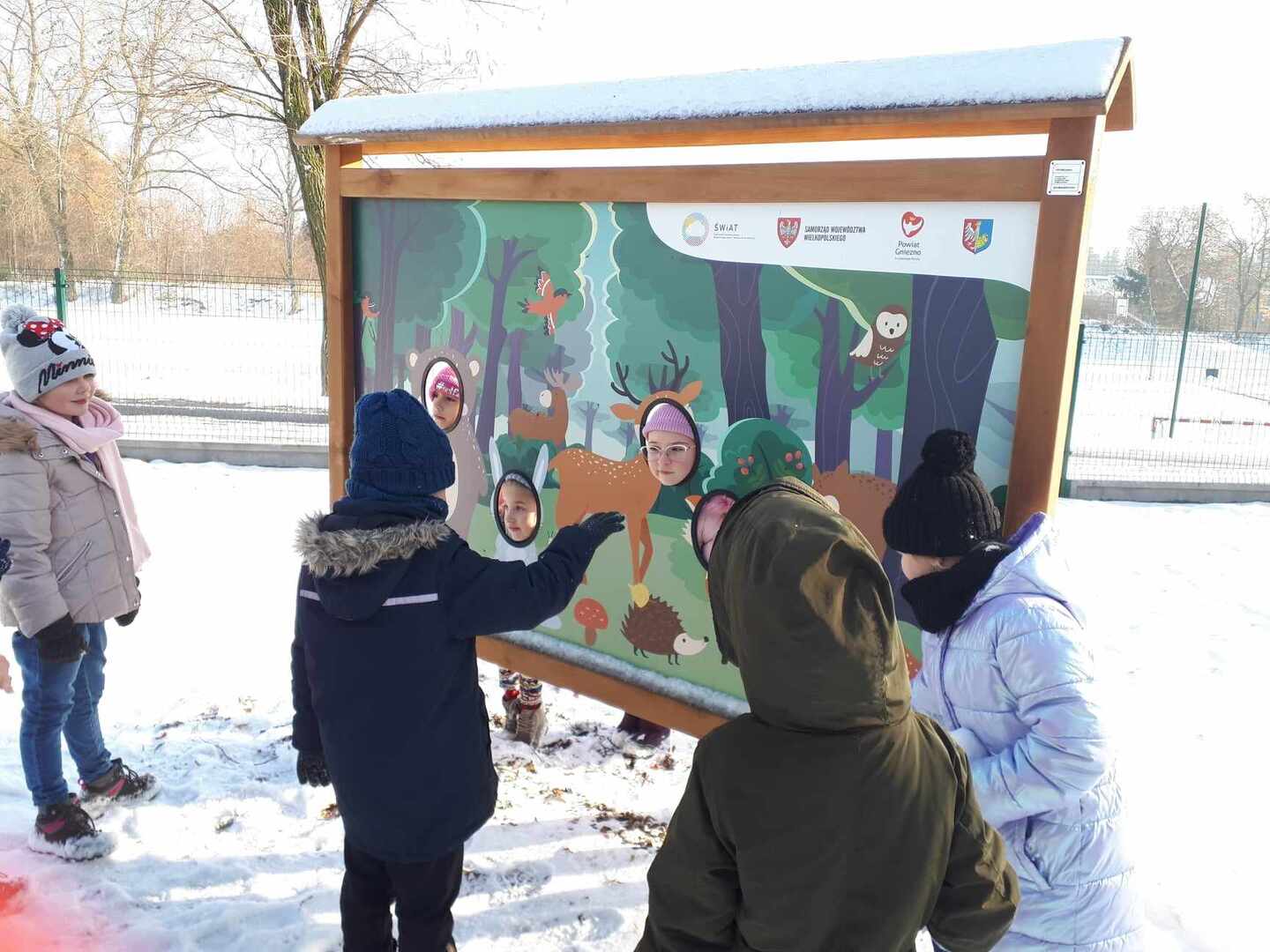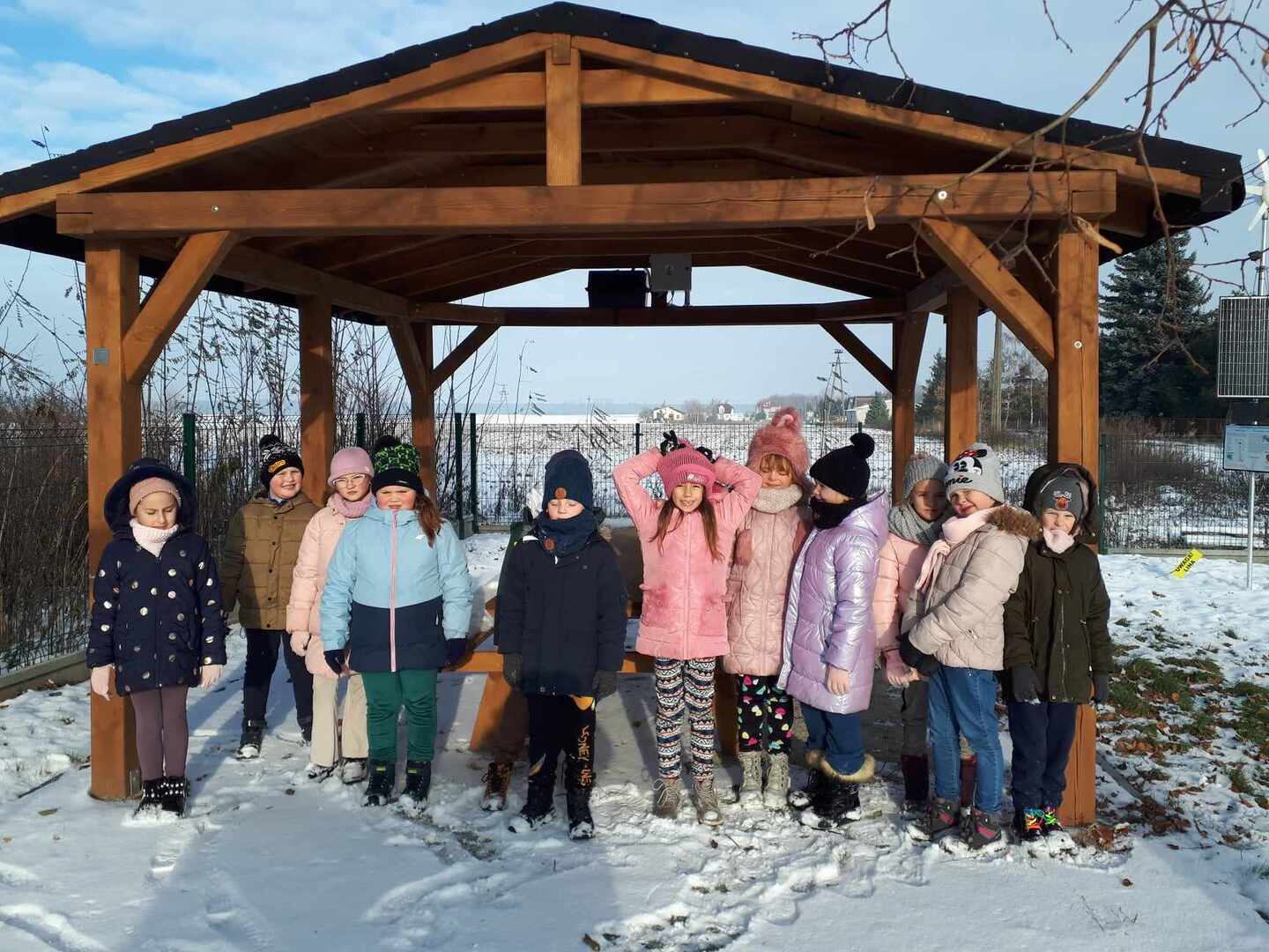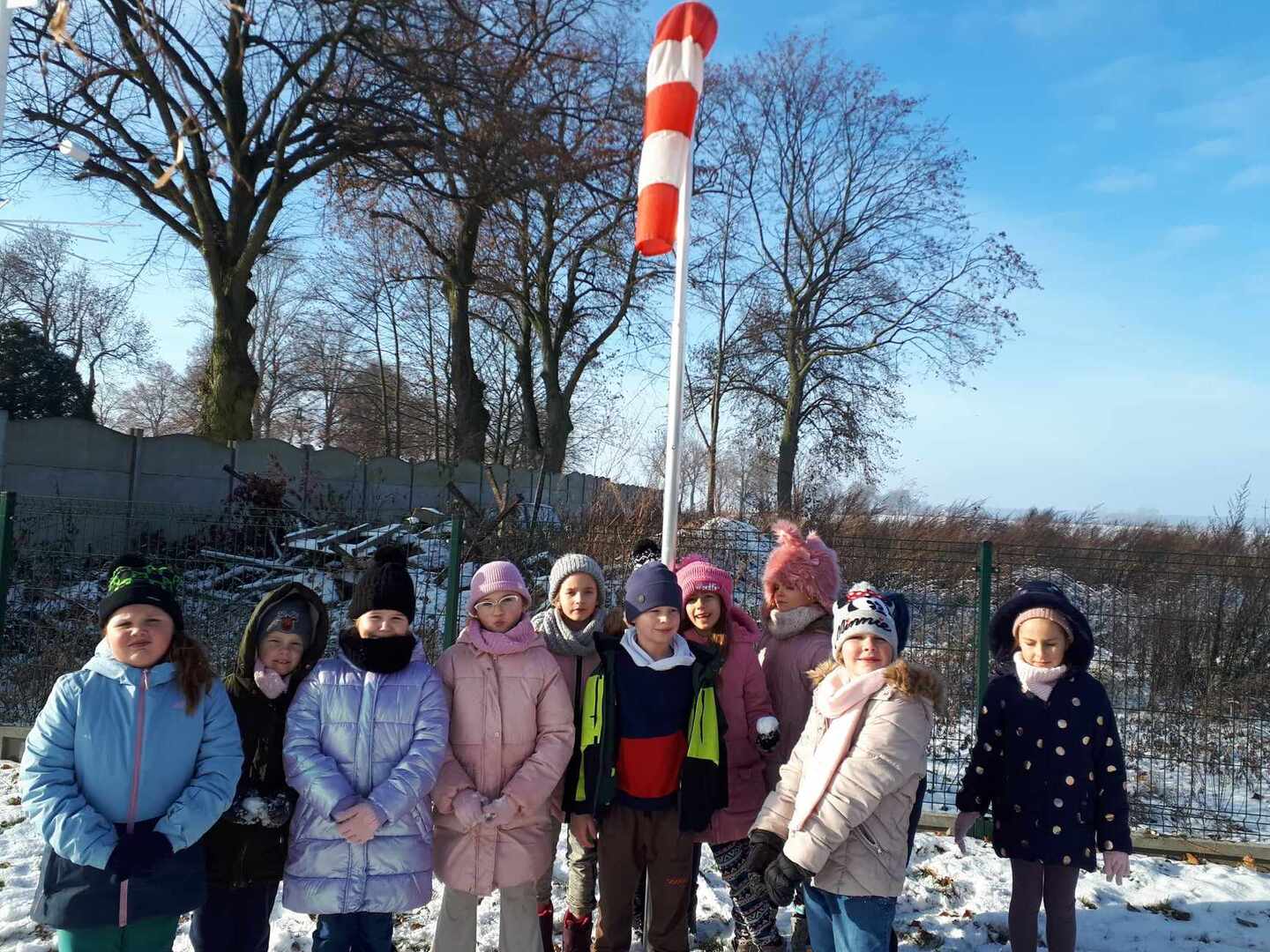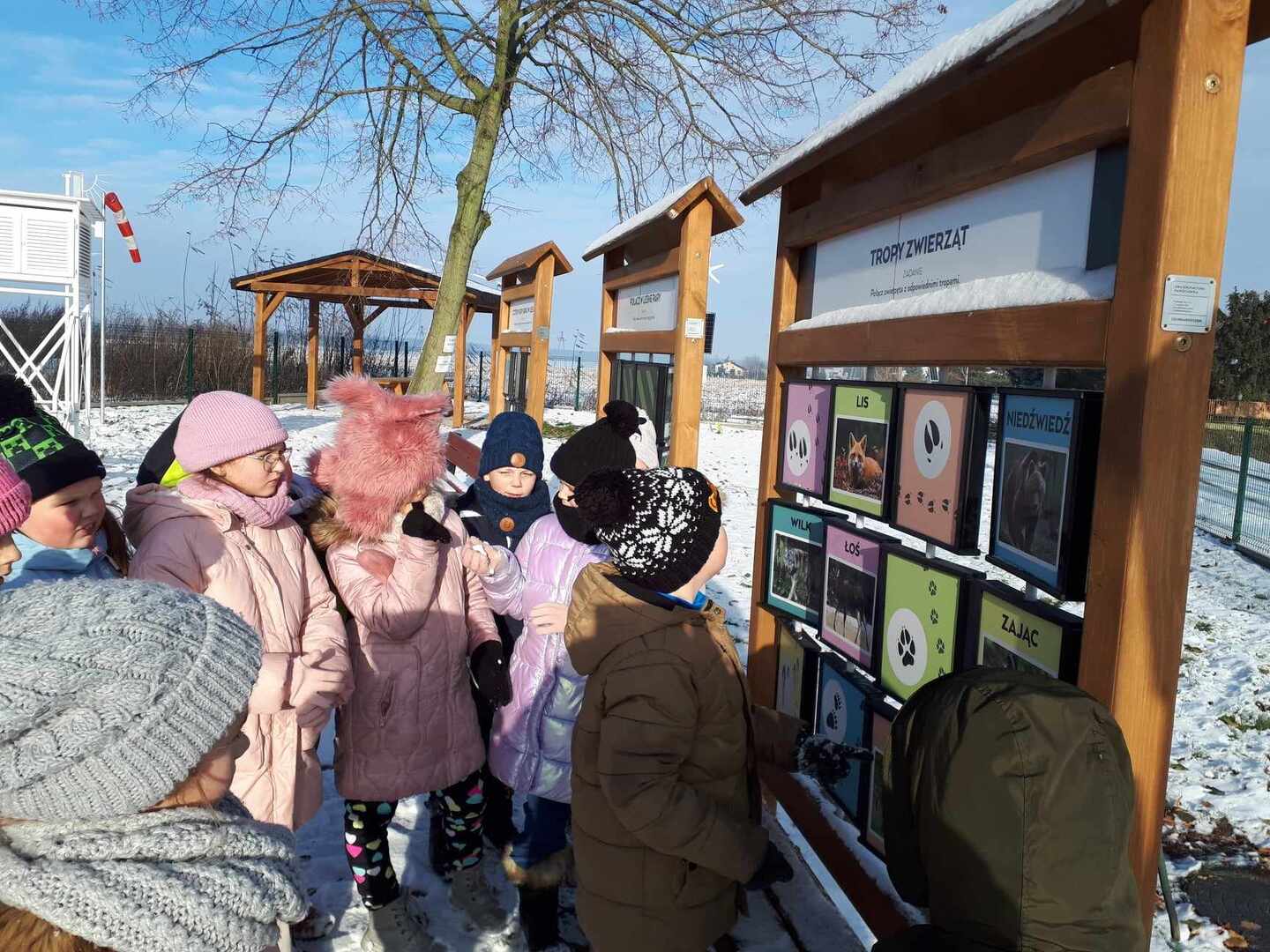 Pierwszy śnieg i słoneczny dzień zachęciły uczniów klas 1-3 do kolejnych obserwacji przyrodniczych na ścieżce edukacyjnej i w ogródku meteorologicznym znajdującym się przy naszej szkole. Podczas zajęć rozwijających umiejętności przyrodnicze najmłodsi uczniowie podziwiali piękno śnieżnej aury, obserwowali wskazania rękawa meteorologicznego, czyli siłę i kierunek wiatru, odczytywali temperaturę z termometrów gruntowych oraz wysokość pokrywy śnieżnej na powierzchni gruntu, wykorzystując służącą do tego tyczkę śniegową, wzbogacali wiedzę na temat tropów zwierząt oraz życia zwierząt leśnych późną jesienią i porą zimową.