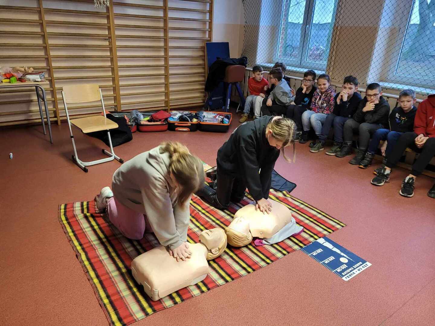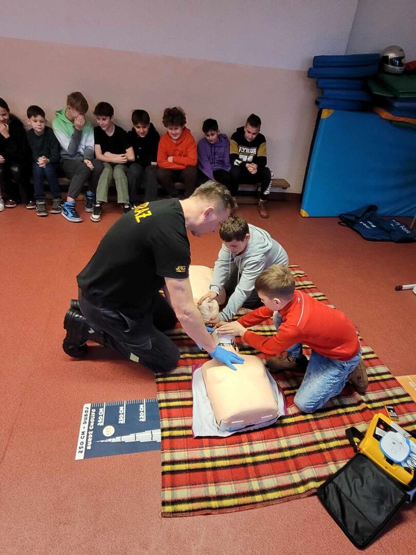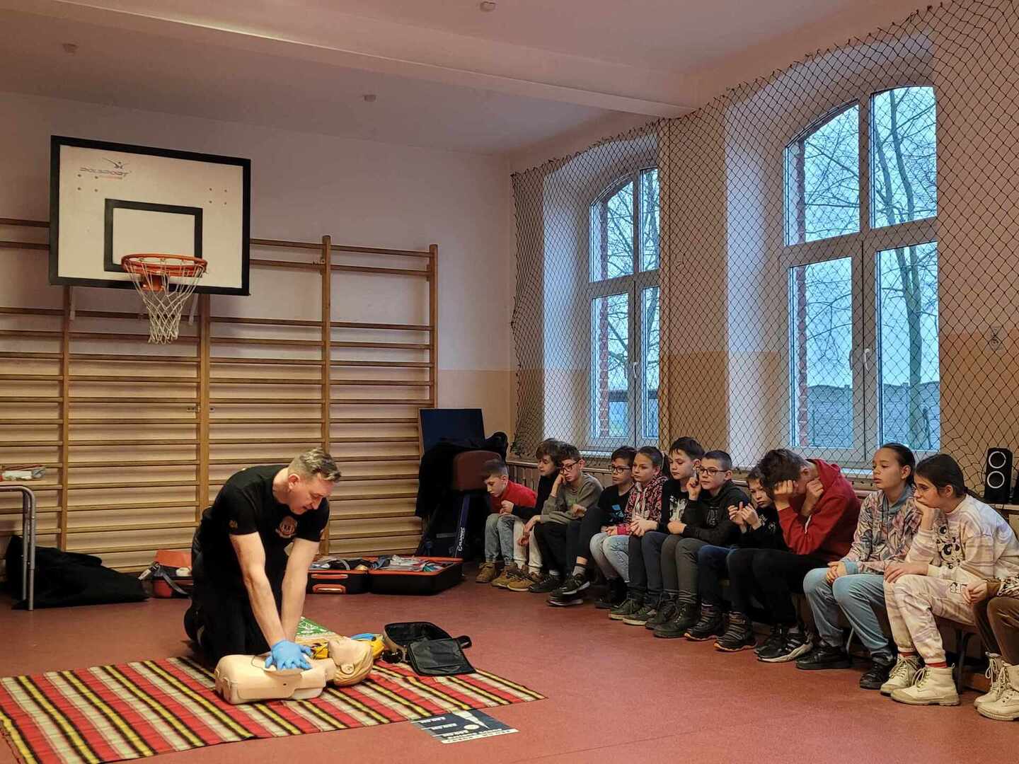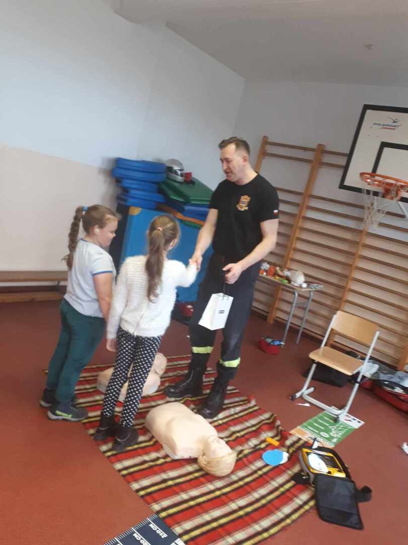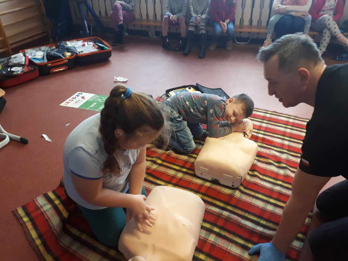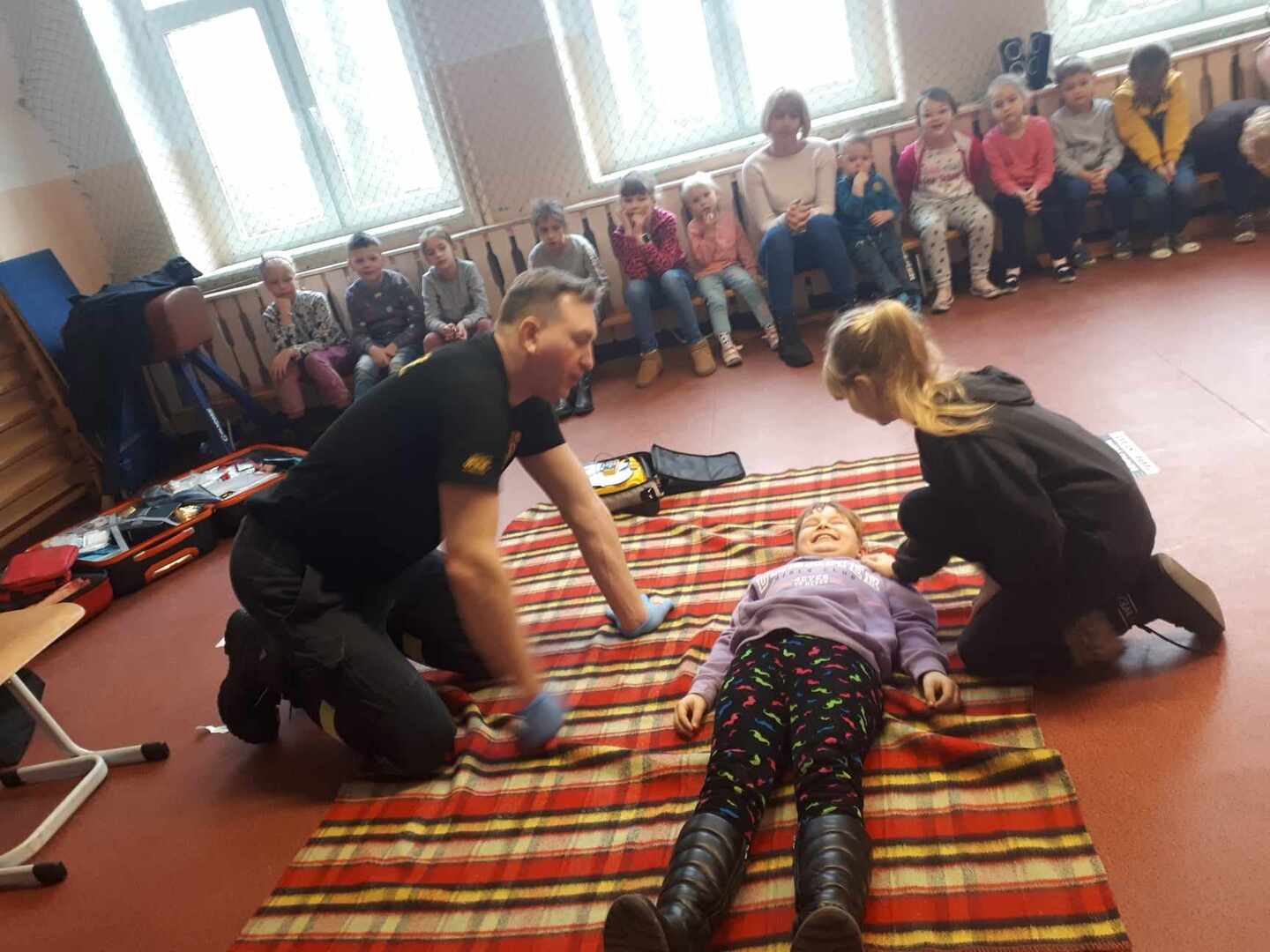 Podczas warsztatów przeprowadzonych z uczniami przez strażaka - ratownika medycznego - dzieci dowiedziały się, jak udzielać pierwszej pomocy przedmedycznej oraz w jaki sposób spędzać ferie zimowe, aby były one dla wszystkich bezpieczne