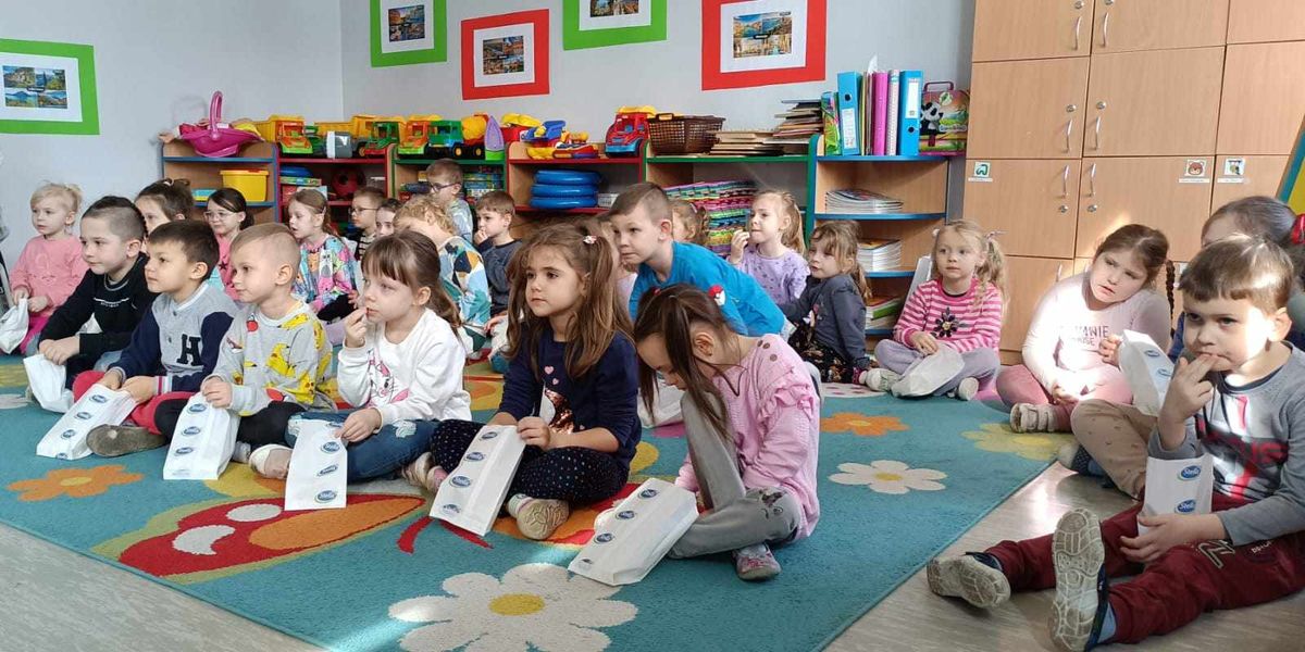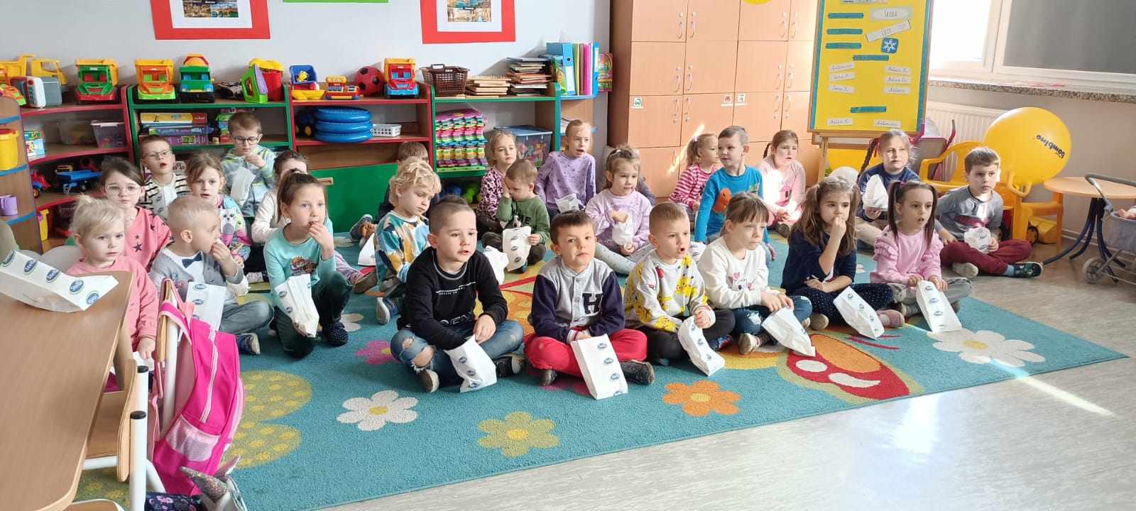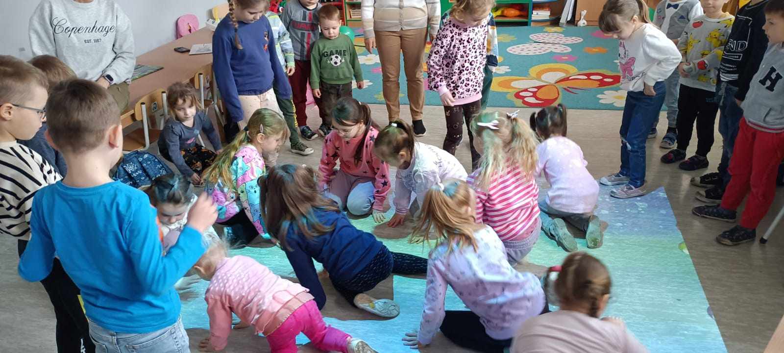 Nasza grupa przedszkolna uczestniczyła dziś we wspólnych zajęciach integracyjnych w przedszkolu w Karniszewie. Dzieci brały udział w seansie filmowym, zajadały się popcornem i skorzystały z dywanu interaktywnego ![]()